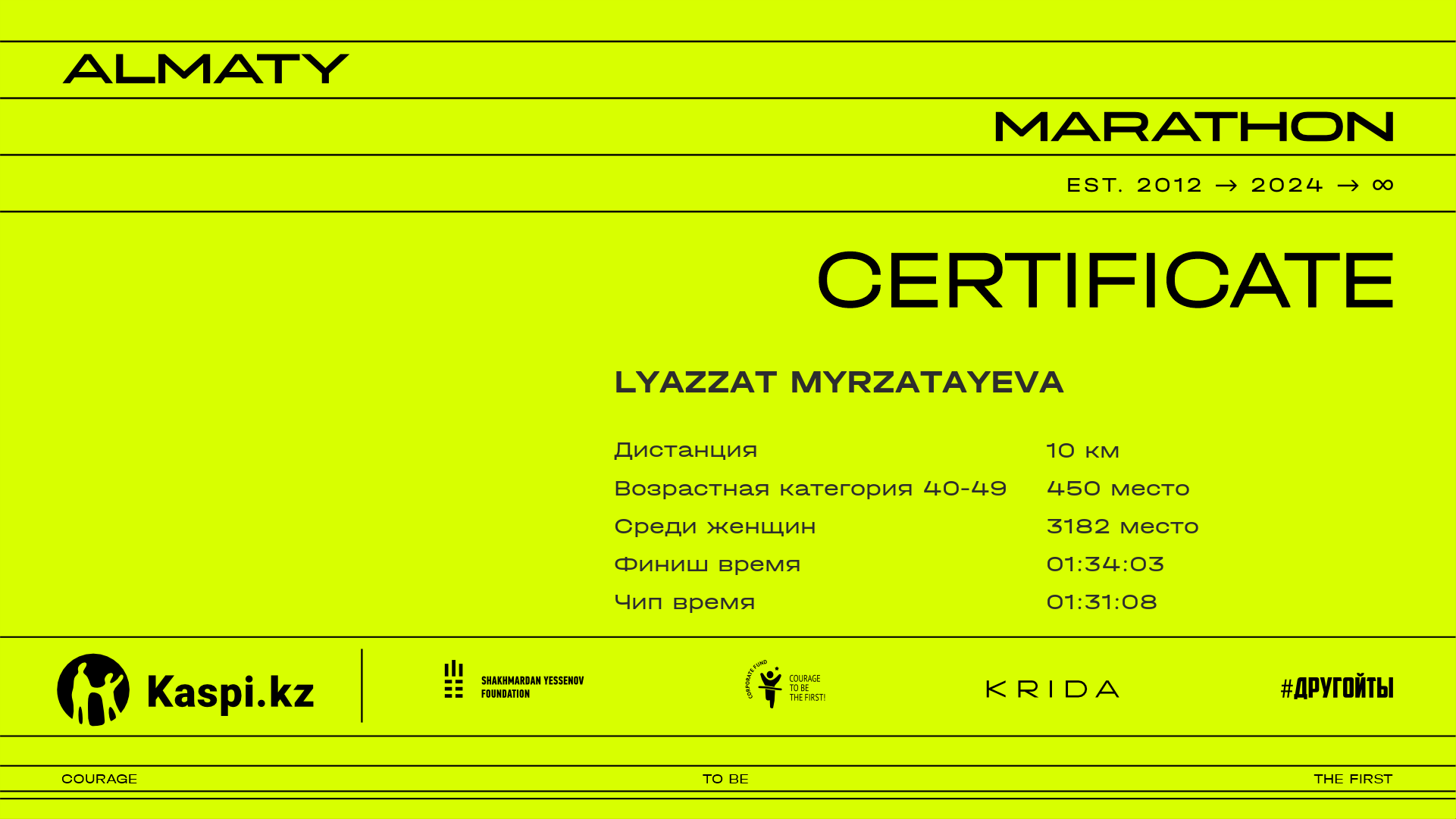 | 7402 | Kamilla Ernest | ![]() | Алматы | 13248 | 01:25:24.64 | 01:36:19.58 | 01:30:55.20 | Скачать |