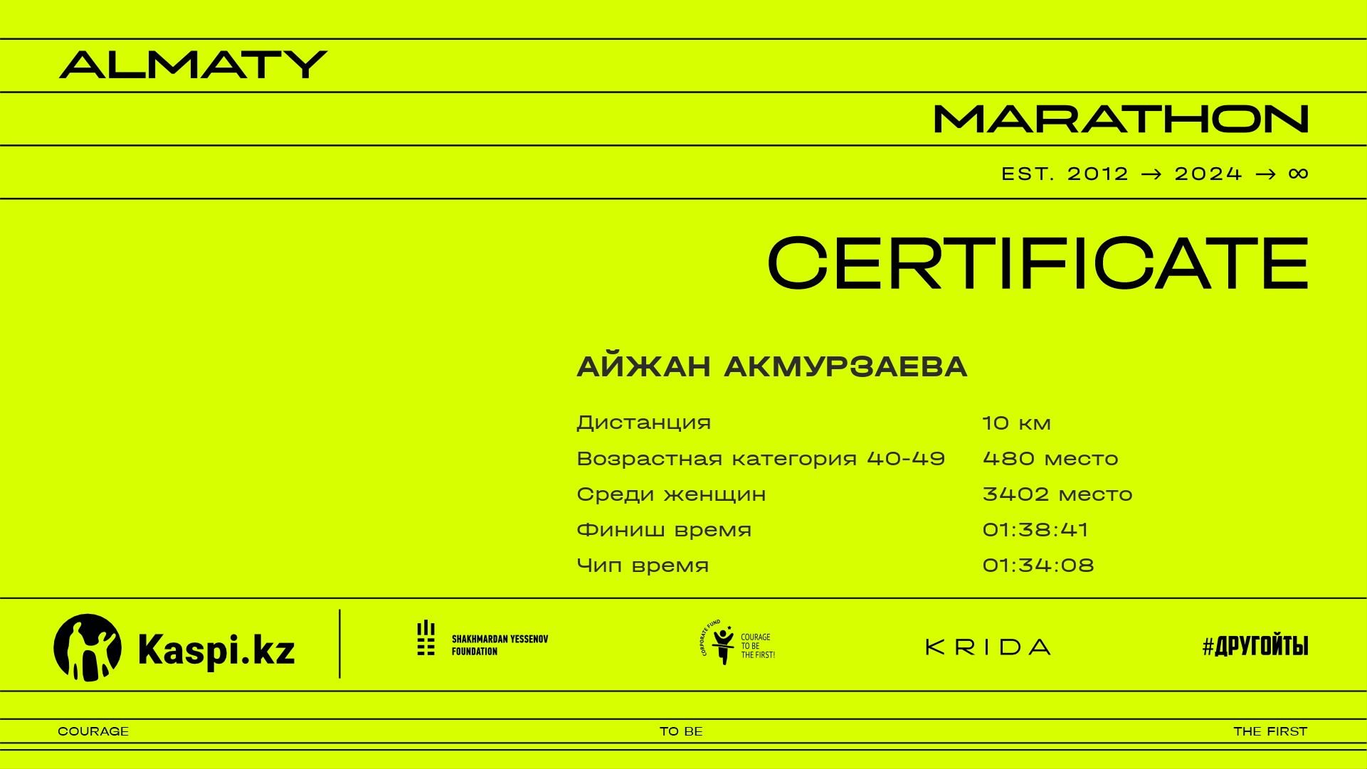 | 7536 | Гульжан Ажинур | ![]() | Алматы | 13962 | 01:29:18.02 | 01:38:34.35 | 01:34:59.83 | Скачать |