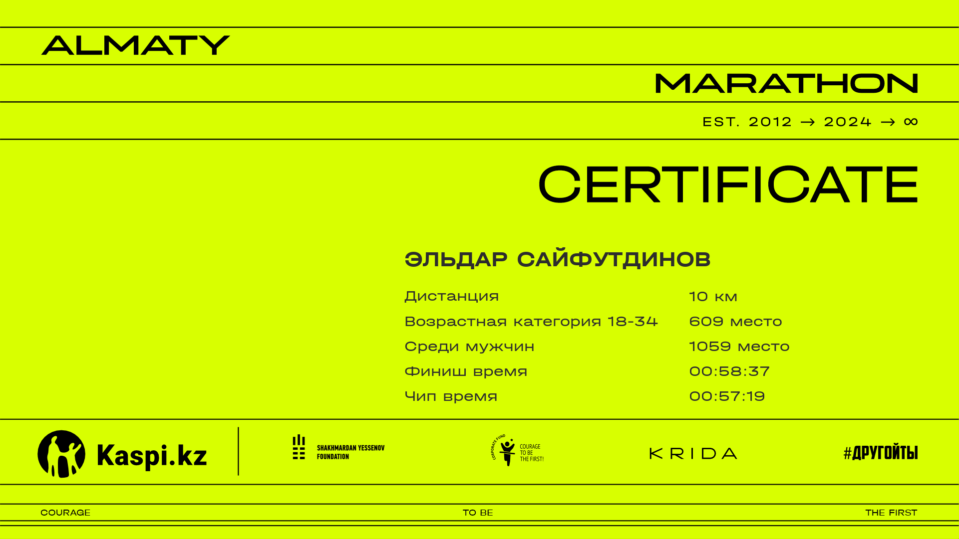 | 1315 | Эльдар Сайфутдинов | ![]() | Алматы | 10085 | 00:50:55.30 | 00:58:37.77 | 00:57:19.40 | Скачать |