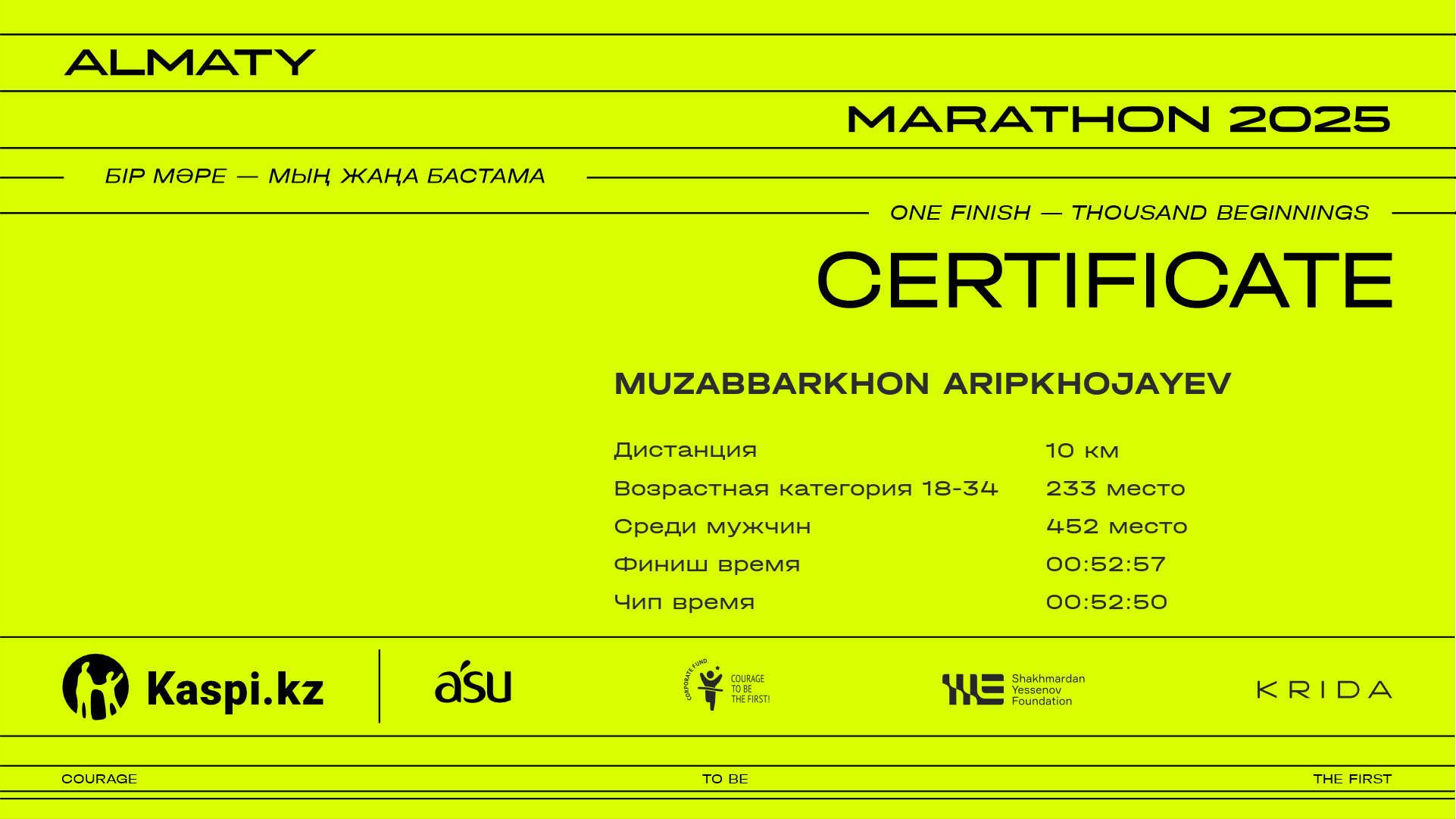 | 552 | Батырхан Султанбеков | ![]() | Алматы | 8874 | 00:46:06 | 00:52:54 | 00:52:50 | Скачать |