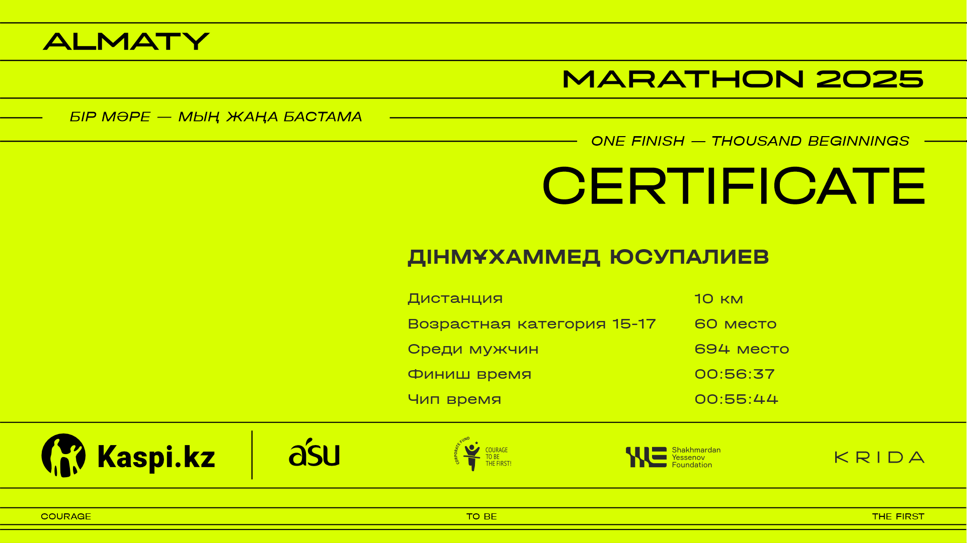 | 141 | Almat Tursynkanov | ![]() | Алматы | 6559 | 00:38:57 | 00:44:51 | 00:44:48 | Скачать |