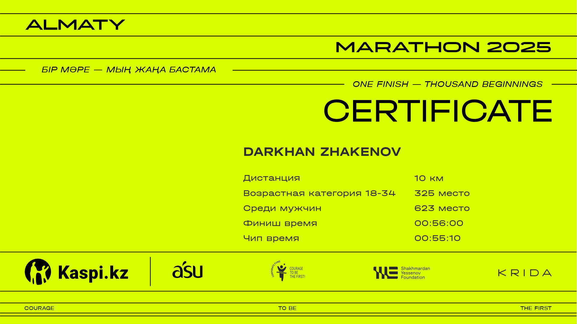 | 765 | Darkhan Zhakenov | ![]() | Алматы | 7284 | 00:48:17 | 00:56:00 | 00:55:10 | Скачать |