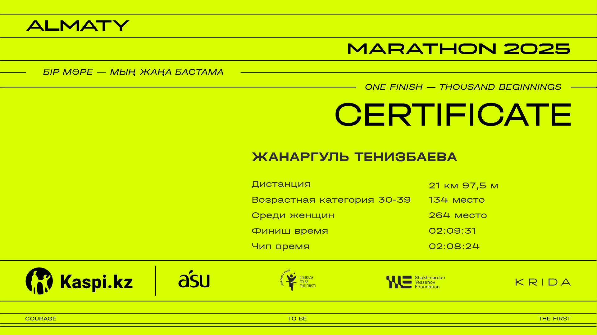 | DNF | Шыңғыс Әділханов | ![]() | Алматы | 2112 | 00:43:09 | 01:23:53 | 02:01:19 | 02:53:23 | 03:03:44 | 03:01:30 | |