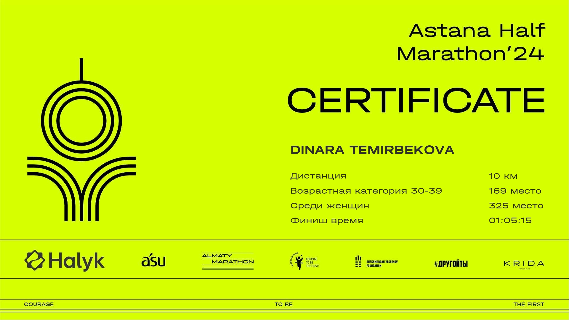 | 1382 | Айдана Ныгиманова | ![]() | Астана | 6260 | 00:25:56.42 | 00:57:34.53 | 01:04:12.23 | 01:02:00.06 | Скачать |