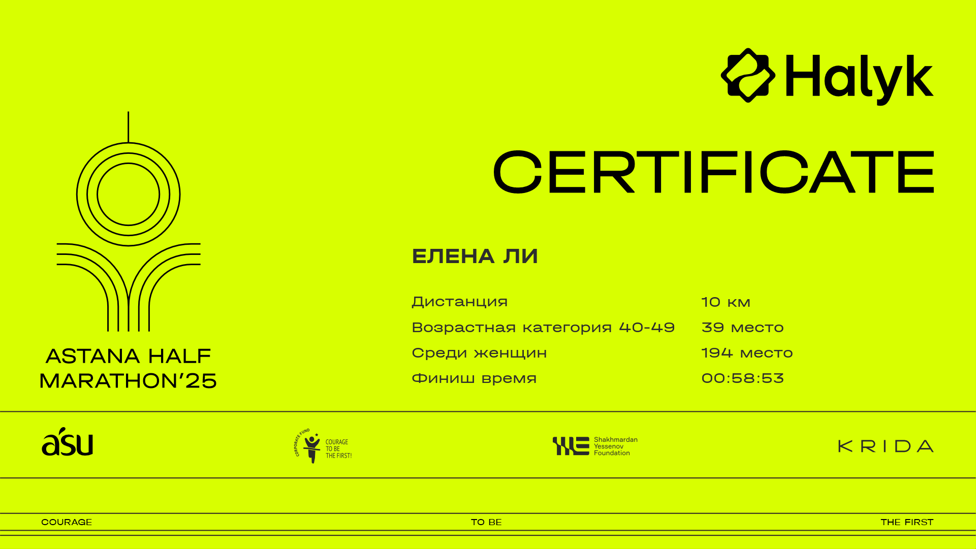 | 1068 | Assel Yerbekeyeva | ![]() | Астана | 4800 | 00:35:17 | 00:58:56 | 00:58:28 | Скачать |