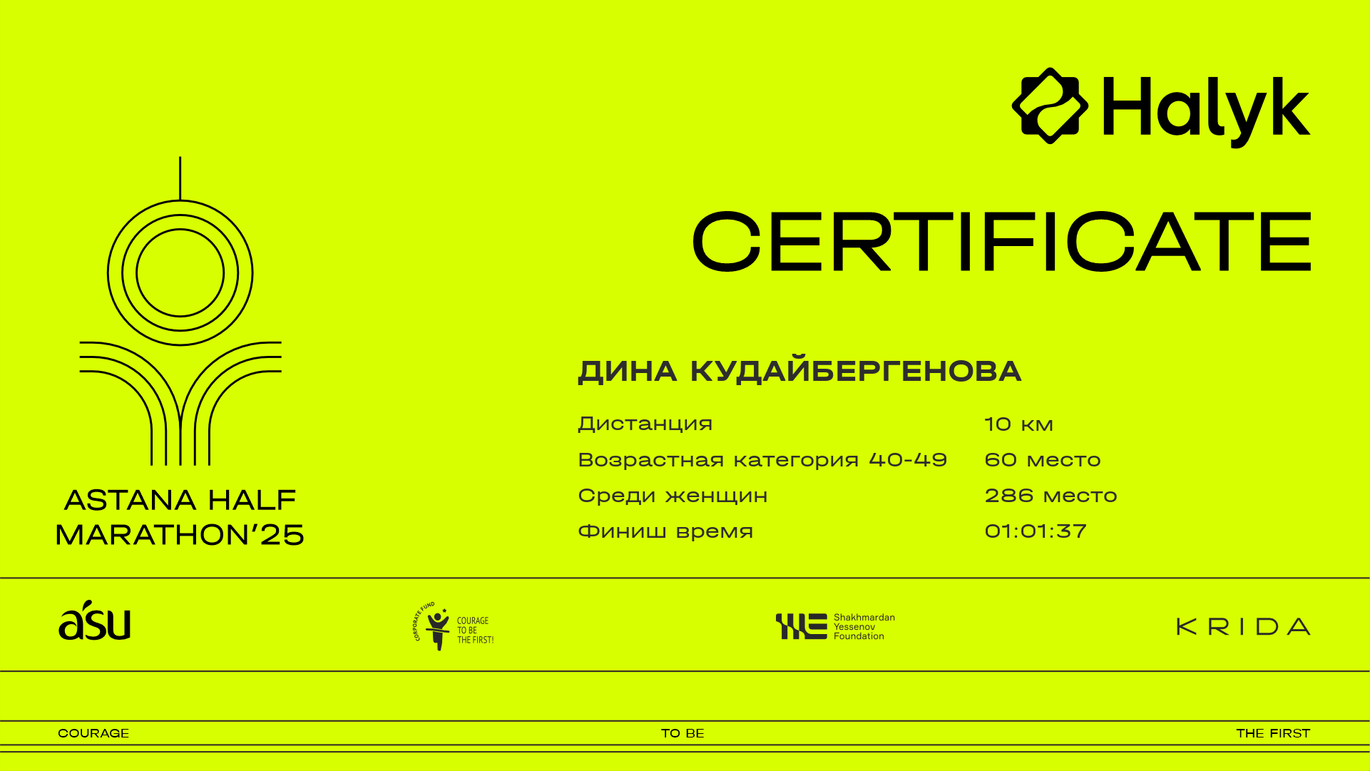 | 1339 | Асель Аккушкарова | ![]() | Астана | 3070 | 00:34:34 | 01:01:33 | 01:00:58 | Скачать |