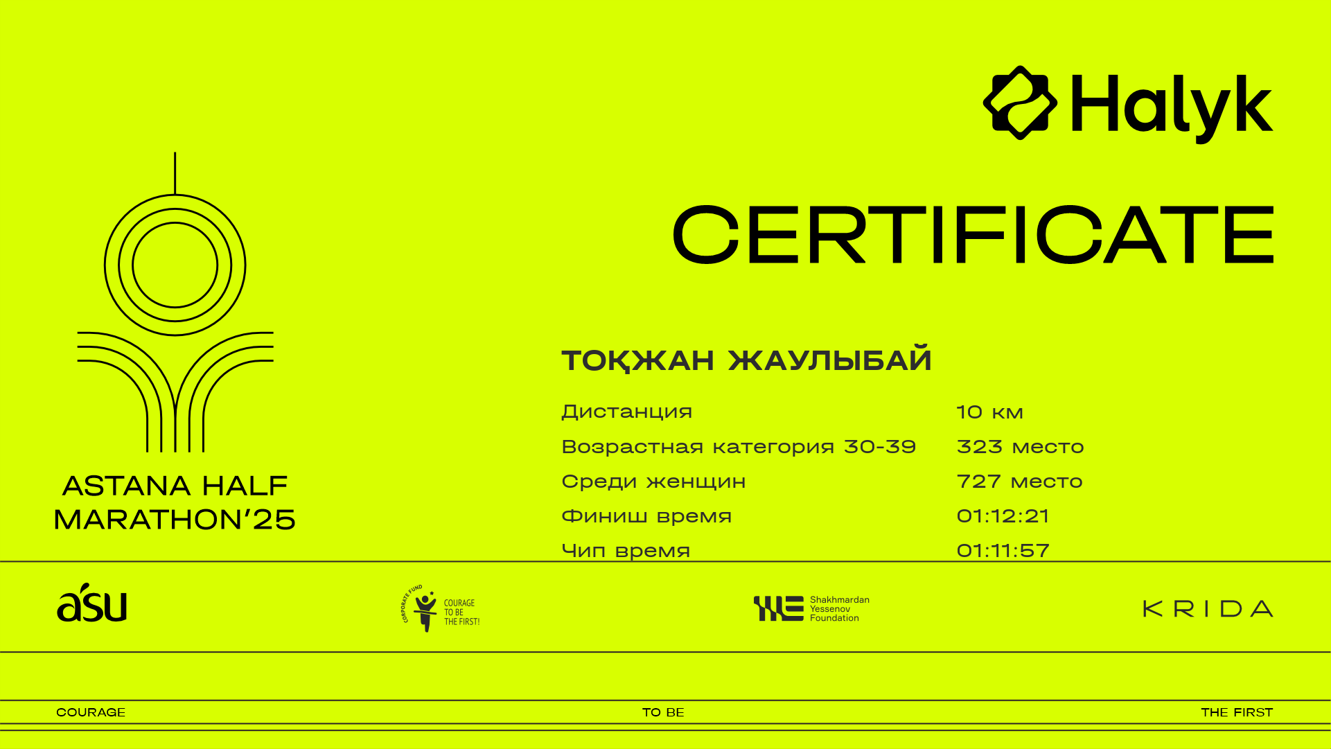 | 2155 | Улболсын Абдиева | ![]() | Астана | 5797 | 00:41:14 | 01:09:29 | 01:08:30 | Скачать |