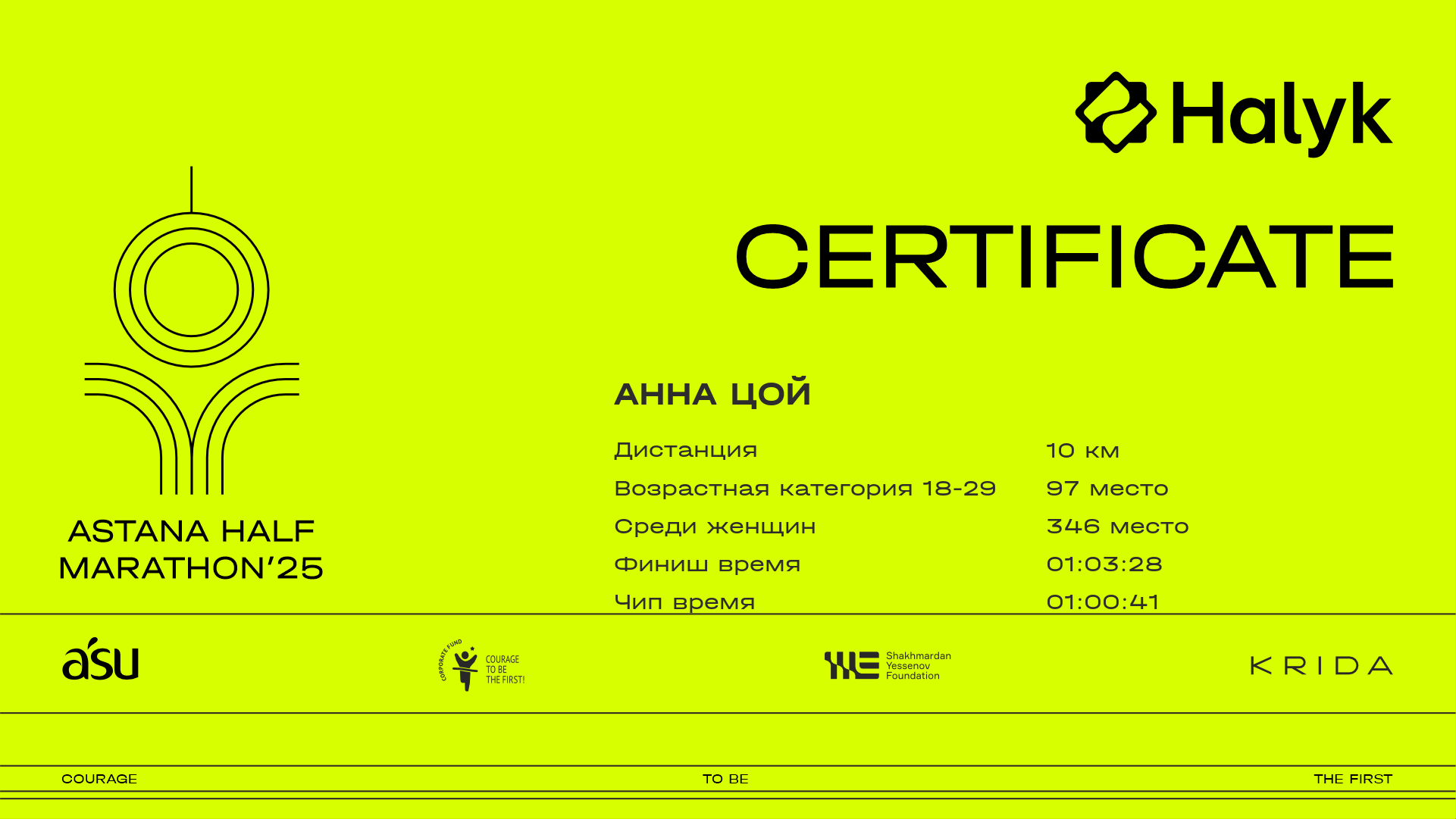 | 1505 | Аружан Тулеген | ![]() | Астана | 6064 | 00:38:07 | 01:03:18 | 01:01:25 | Скачать |
