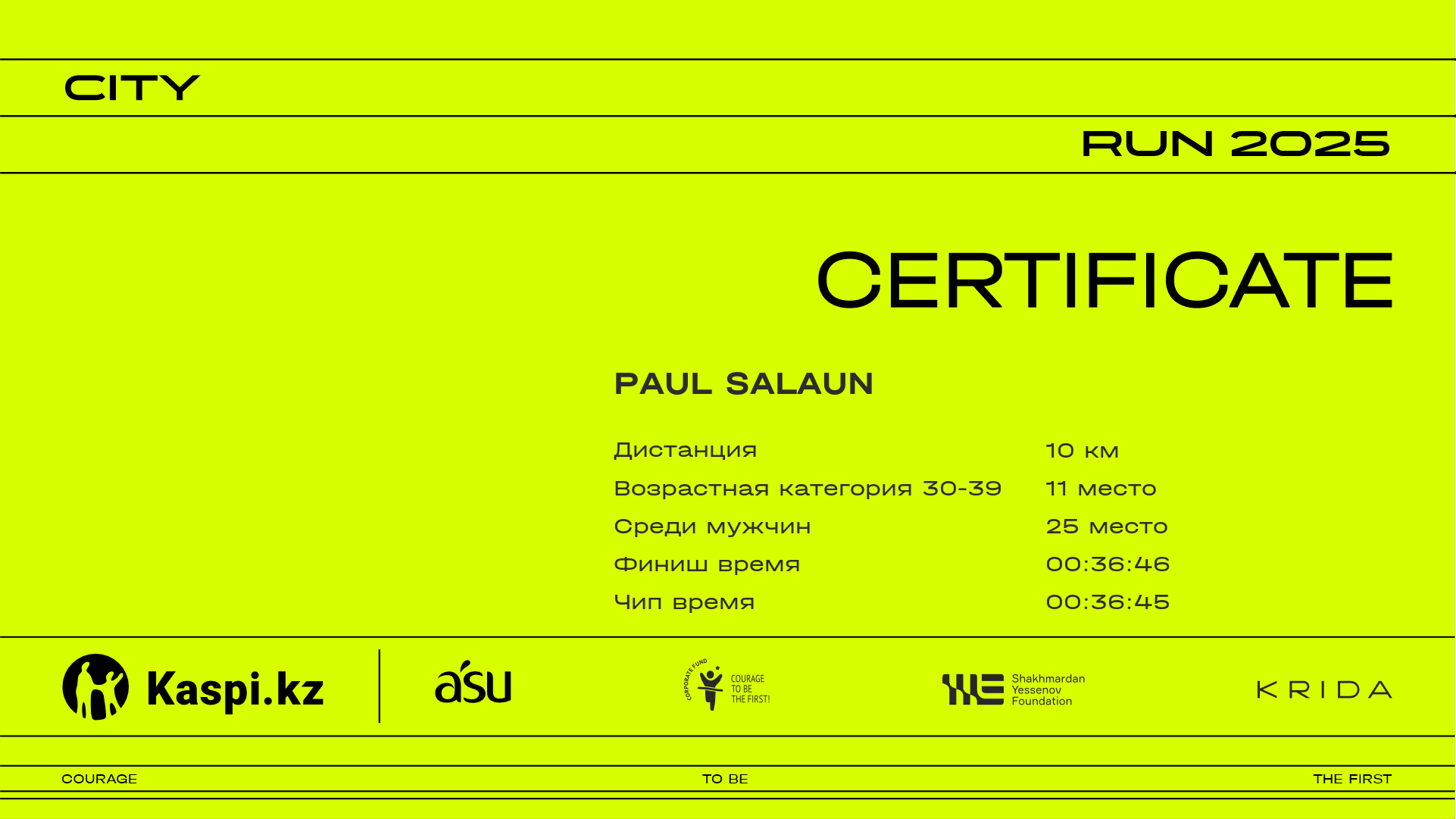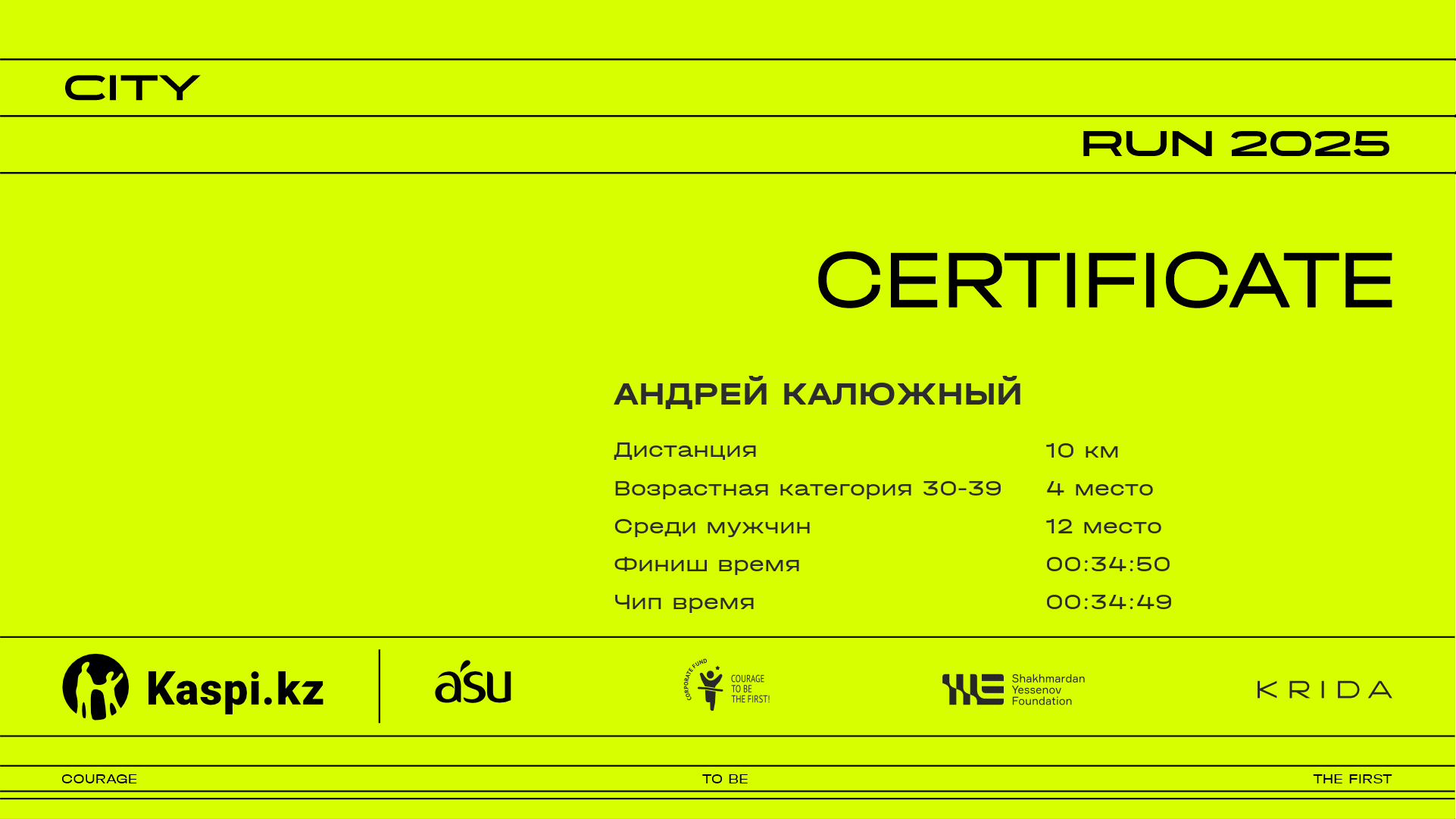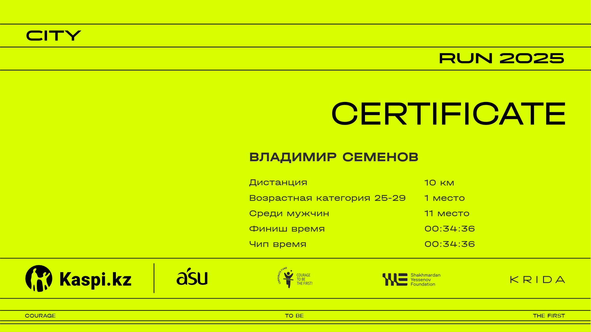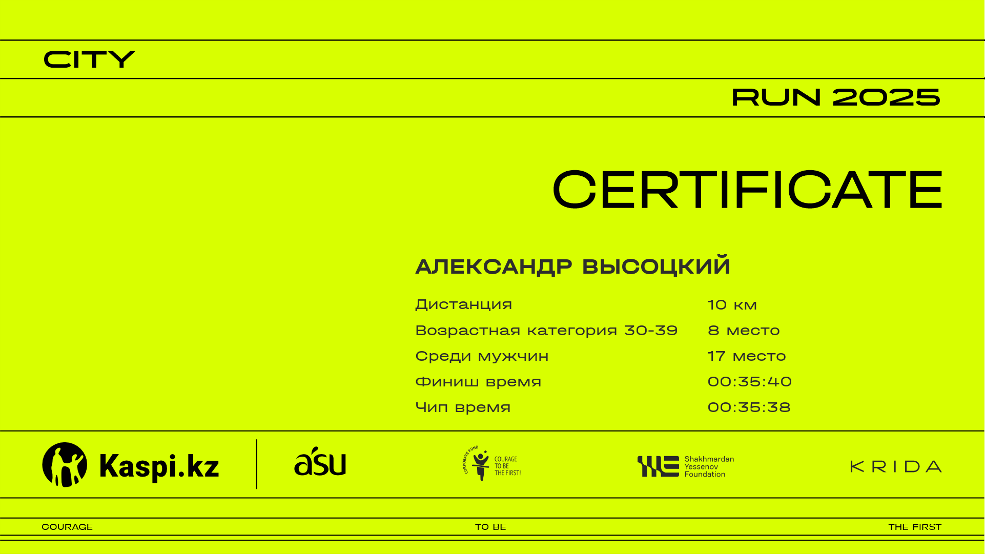 | 18 | Roman Kuznetsov | ![]() | Алматы | 1893 | 00:08:49 | 00:15:13 | 00:22:10 | 00:29:17 | 00:34:51 | 00:35:43 | 00:35:41 | Скачать |