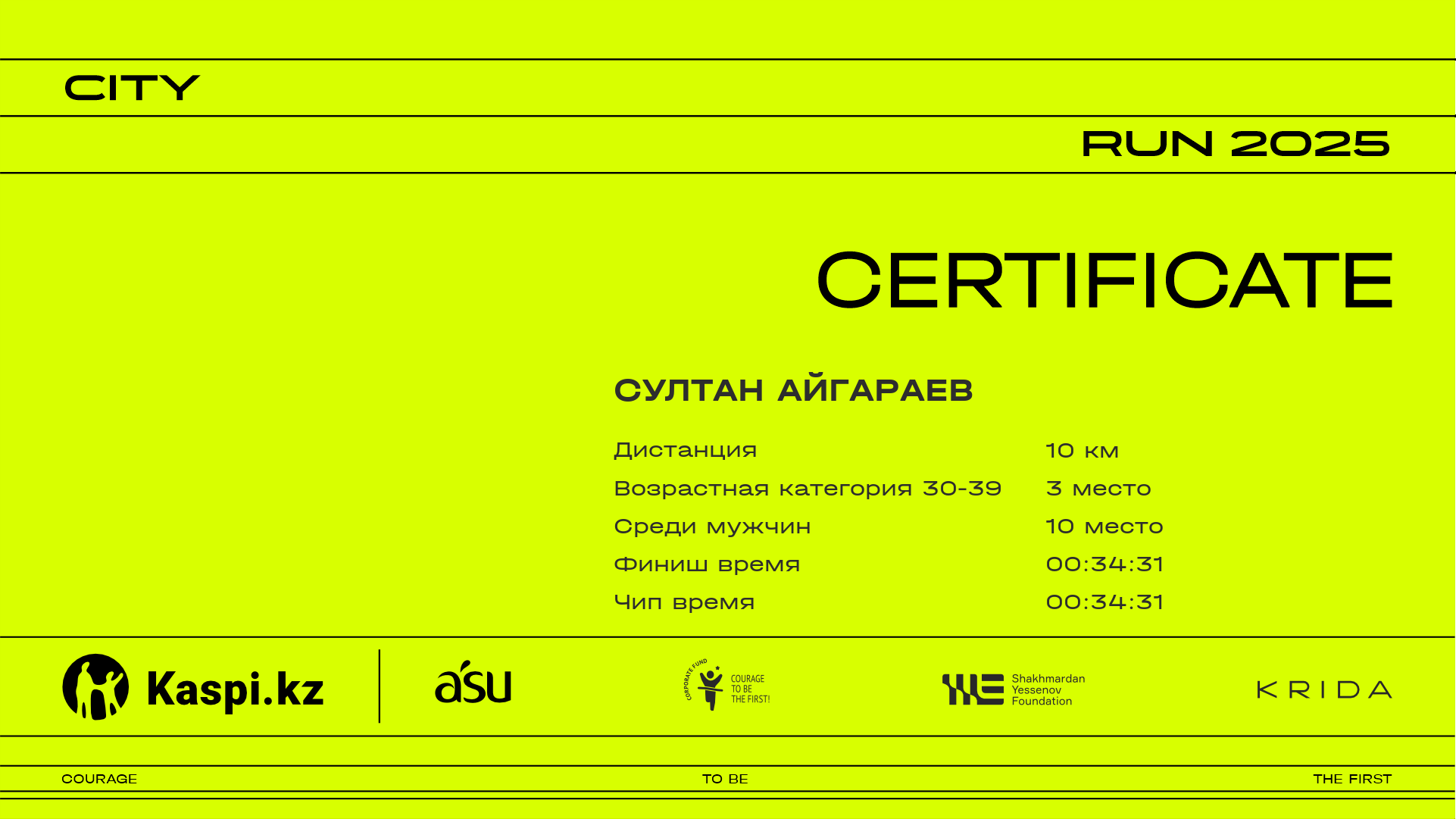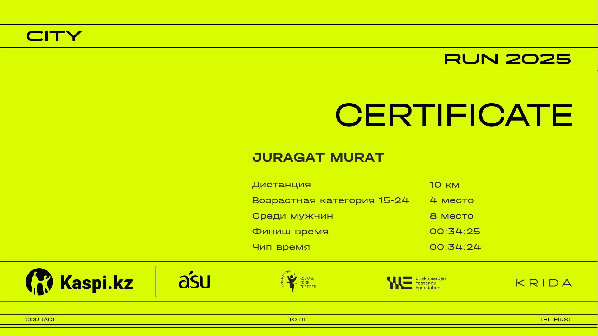 | 5 | Akimzhan Yelekenov | ![]() | Almaty | 1120 | 00:08:25 | 00:14:30 | 00:21:10 | 00:27:58 | 00:32:55 | 00:33:42 | 00:33:41 | Скачать |