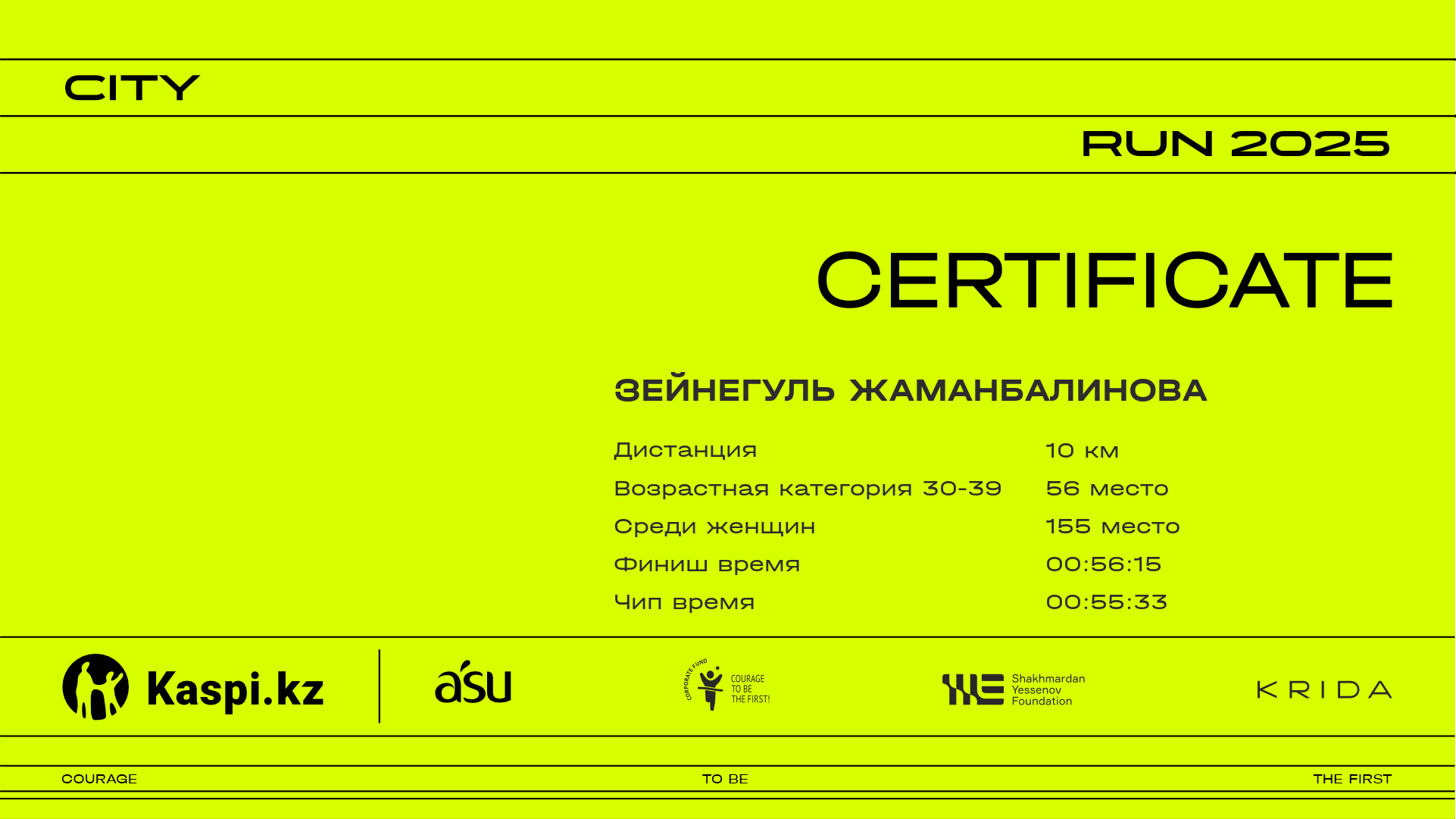 | 1697 | Сангугаш Кенжеева | ![]() | Almaty | 817 | 00:21:42 | 00:34:50 | 00:49:13 | 01:04:22 | 01:16:38 | 01:18:19 | 01:17:06 | Скачать |