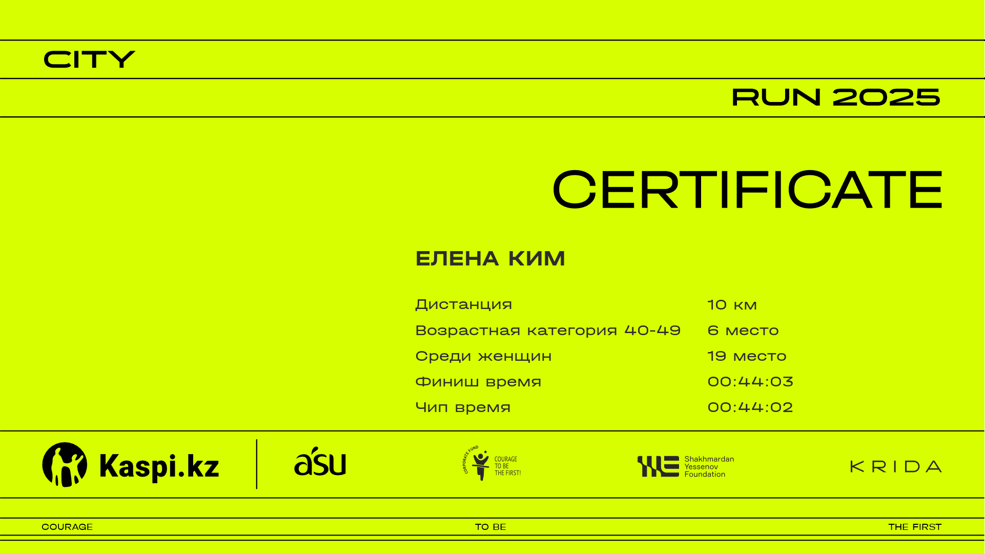 МестоУчастникСтранаГородНомер2.52 km4.37 km6.4 km8.43 km9.84 kmФинишЧип времяСертификат
