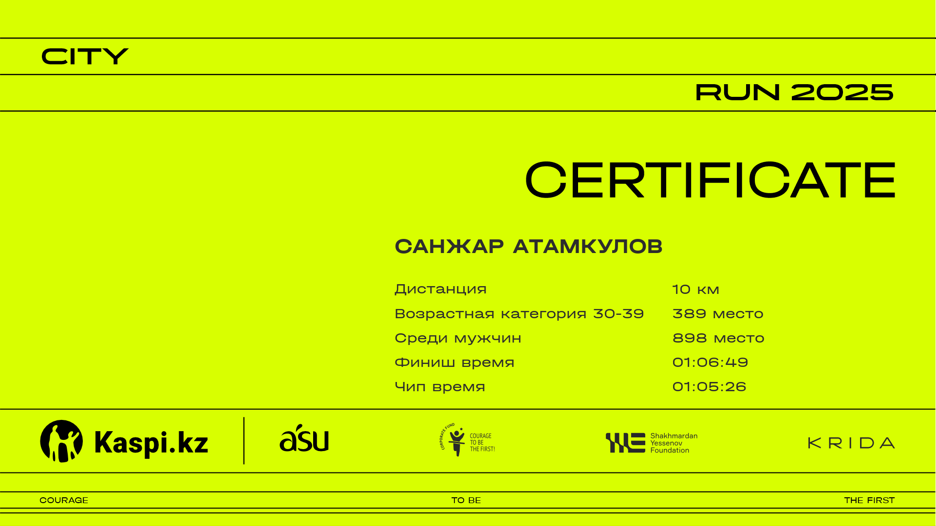 | 1302 | Санжар Атамкулов | ![]() | Алматы | 1551 | 00:18:16 | 00:29:46 | 00:42:37 | 00:55:36 | 01:05:23 | 01:06:49 | 01:05:26 | Скачать |