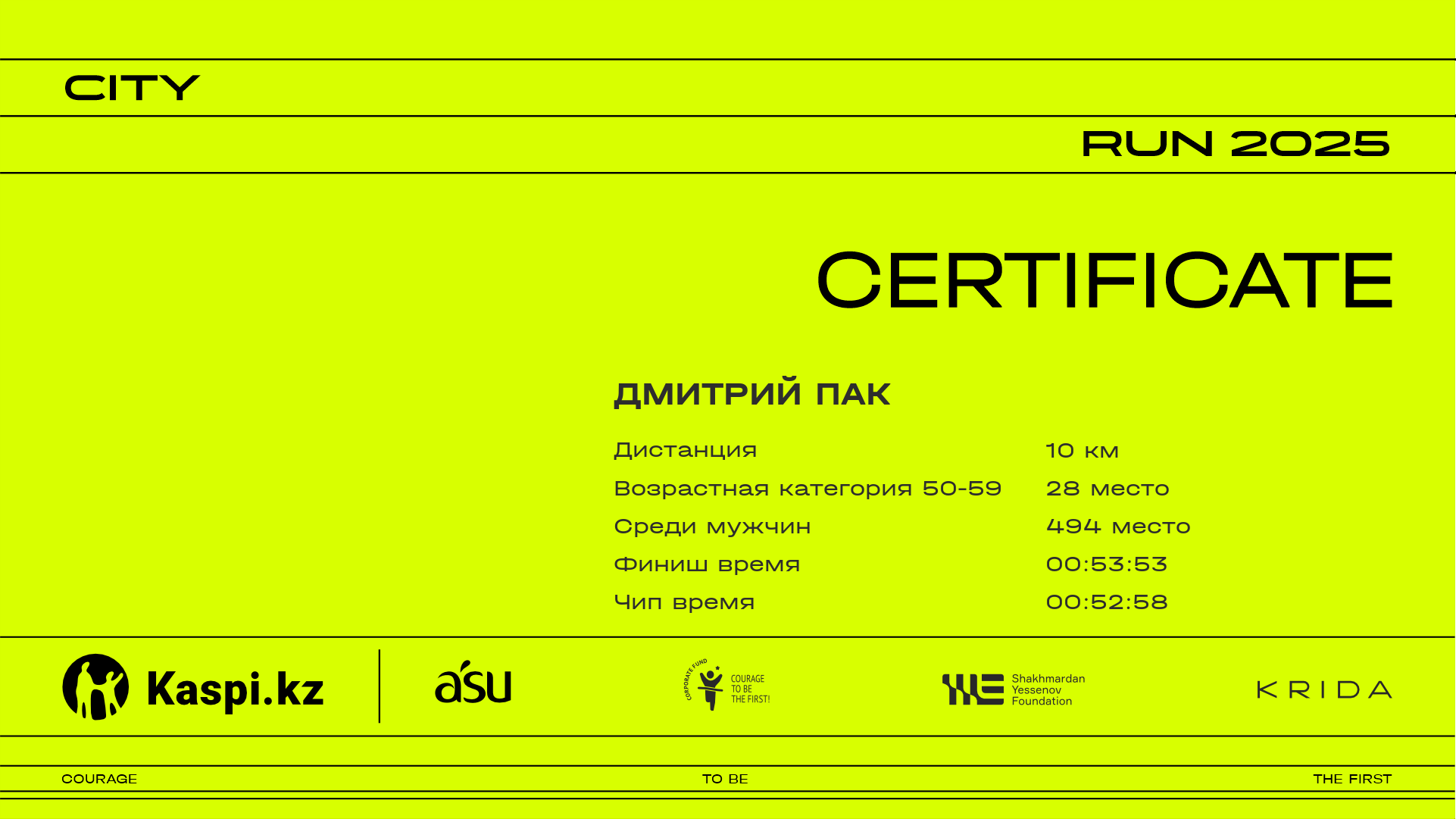 | 51 | Ruslan Erzhanov | ![]() | Алматы | 1952 | 00:10:01 | 00:16:59 | 00:24:24 | 00:31:47 | 00:37:29 | 00:38:21 | 00:38:19 | Скачать |