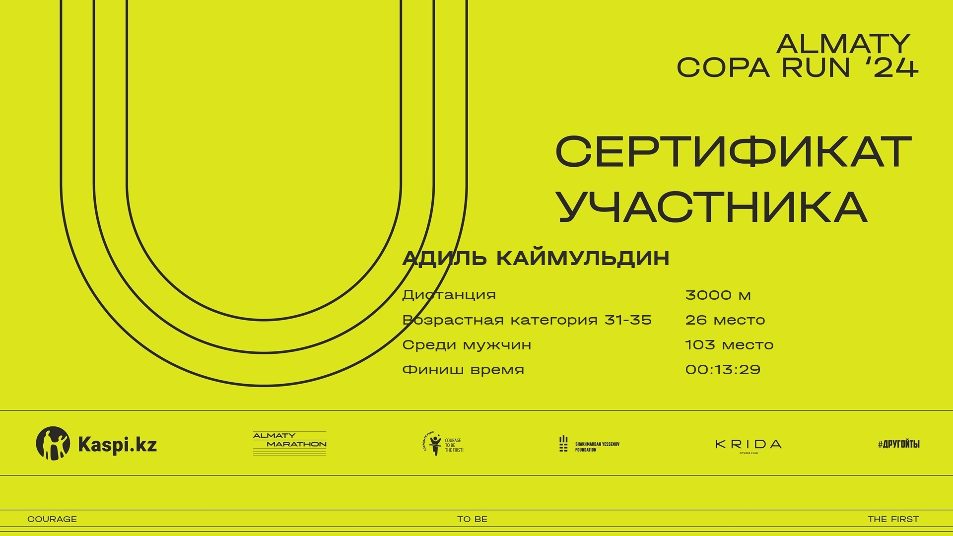 | 118 | Адиль Каймульдин | ![]() | Алматы | 576 | 00:13:29.1 | Скачать |
