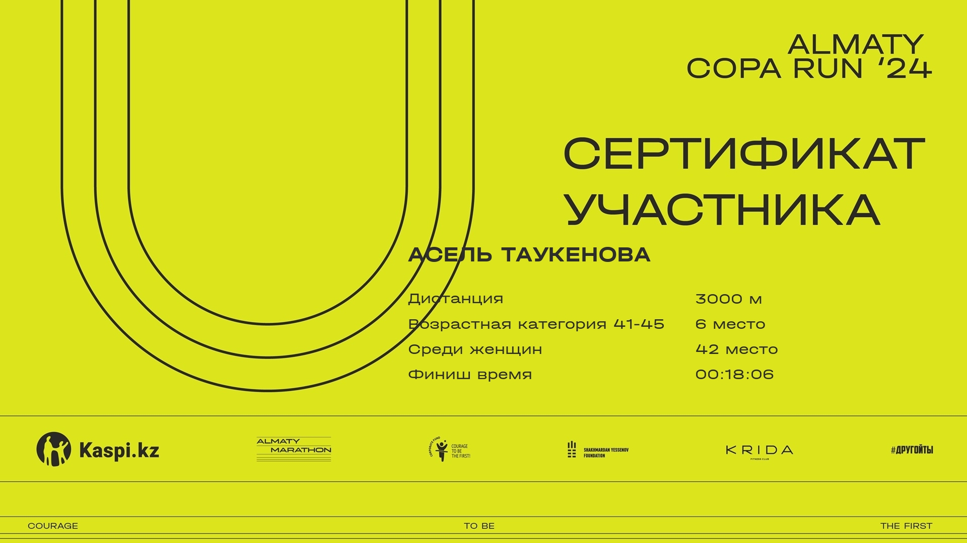 | 176 | Асель Таукенова | ![]() | Алматы | 659 | 00:18:06.7 | Скачать |