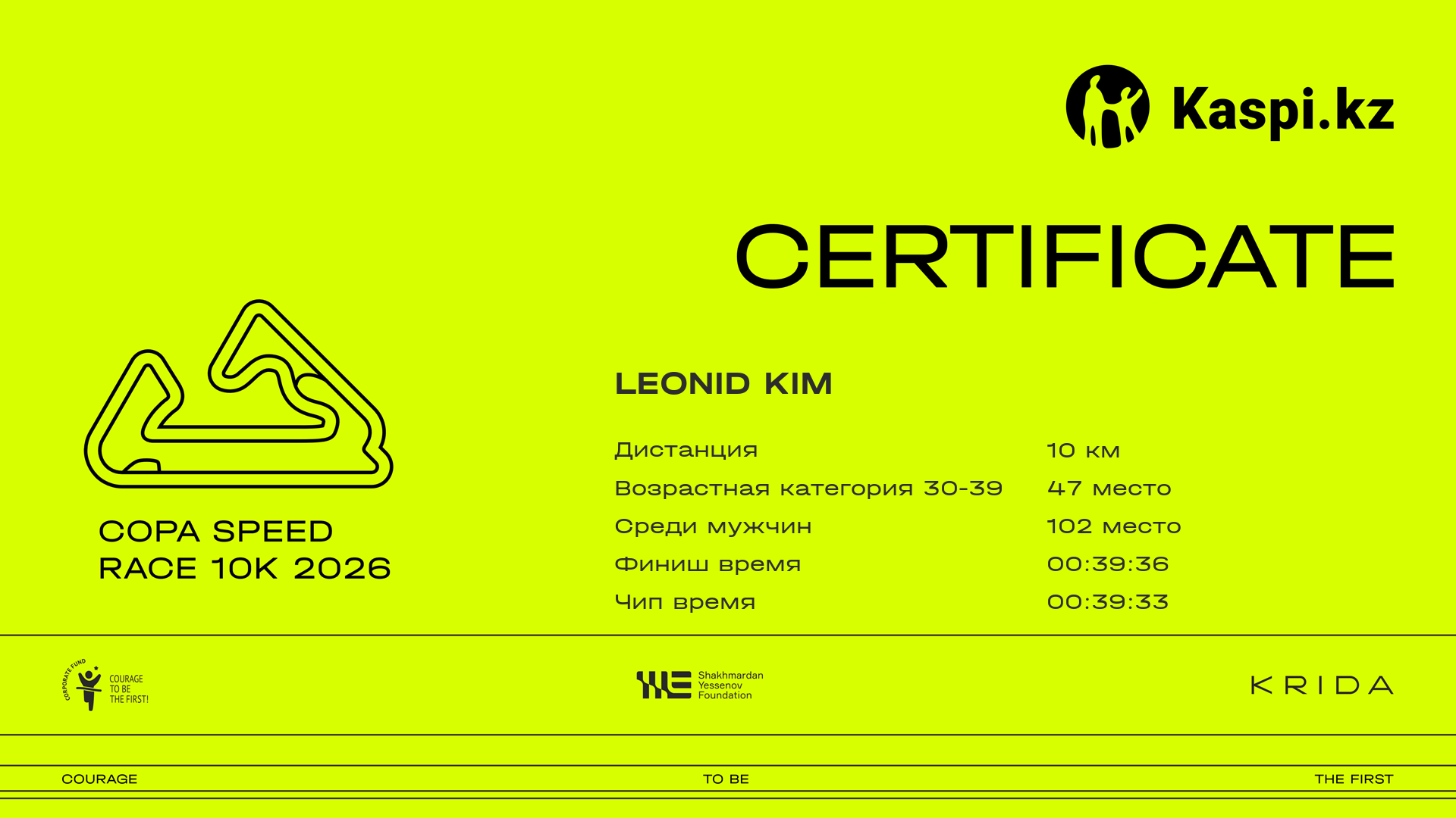 | 108 | Kuanysh Absattarov | ![]() | Almaty | 440 | 00:07:56.25 | 00:14:38.40 | 00:19:17.61 | 00:27:45.57 | 00:34:54.91 | 00:39:35.14 | 00:39:31.78 | Скачать |