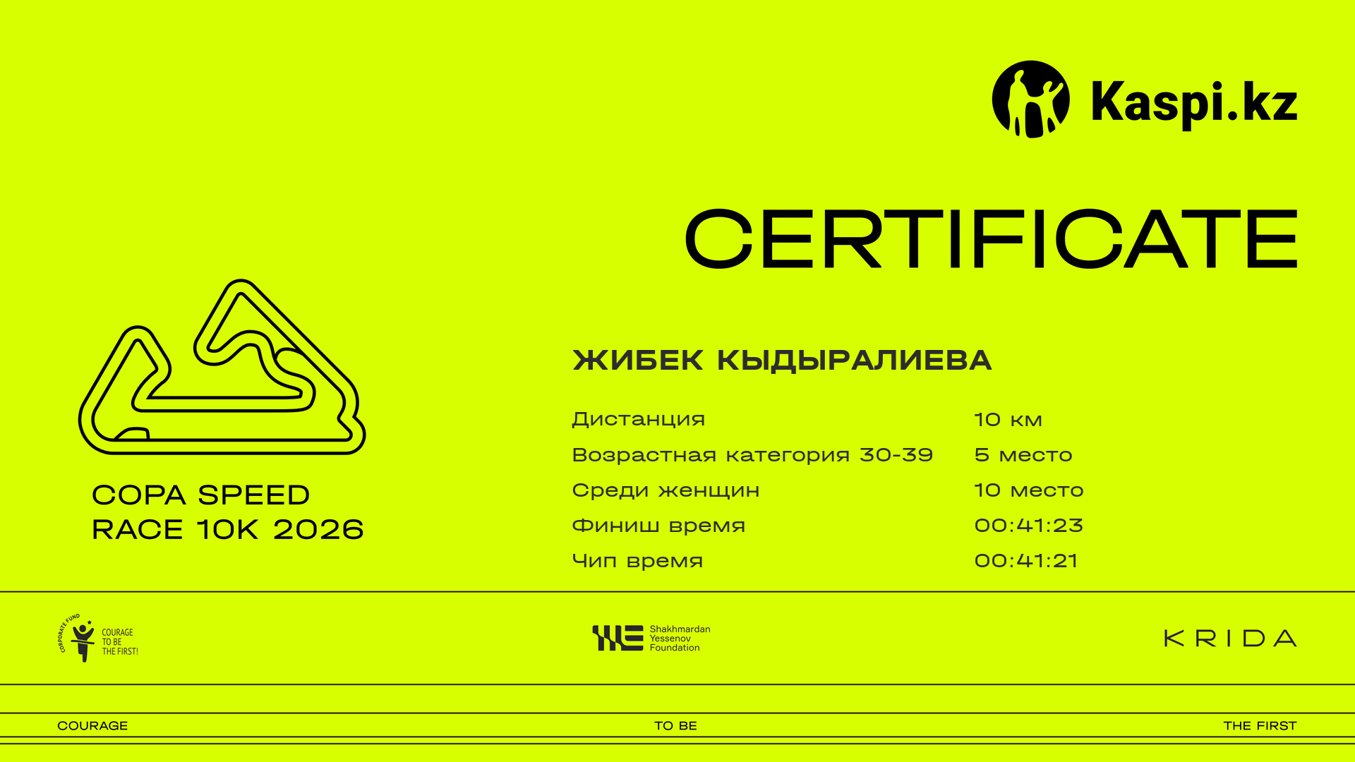 | 140 | Жанболат Кузербай | ![]() | Almaty | 797 | 00:07:47.61 | 00:14:46.97 | 00:19:49.49 | 00:28:27.39 | 00:36:23.13 | 00:41:17.80 | 00:41:15.30 | Скачать |