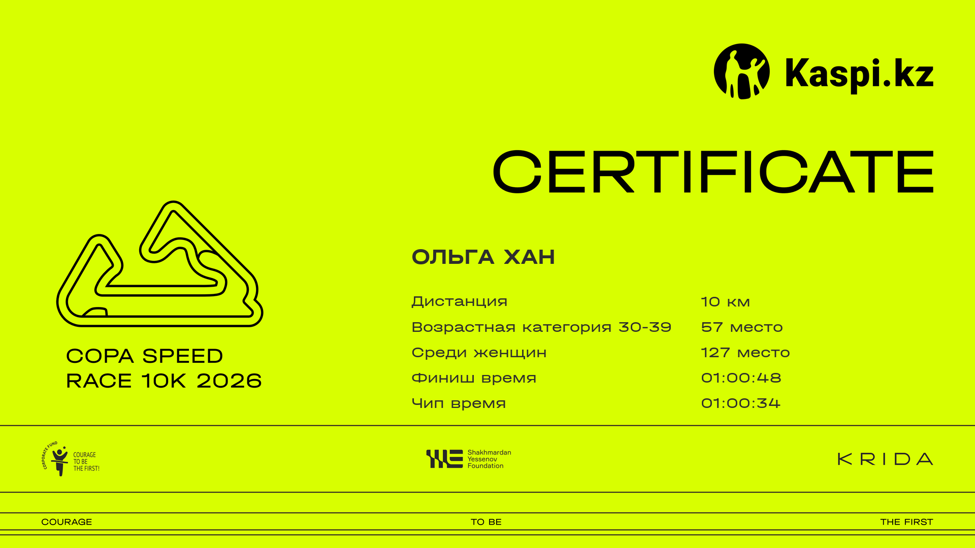 | 608 | Ольга Хан | ![]() | Алматы | 1122 | 00:12:05.85 | 00:22:31.31 | 00:29:44.70 | 00:42:26.84 | 00:53:24.74 | 01:00:48.63 | 01:00:34.81 | Скачать |