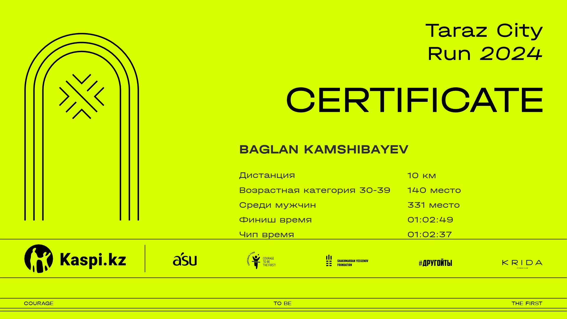 | 450 | Жалгас Кушербаев | ![]() | Тараз | 580 | 00:16:22.30 | 00:32:02.40 | 00:48:32.70 | 01:05:37.30 | 01:04:34.00 | Скачать |