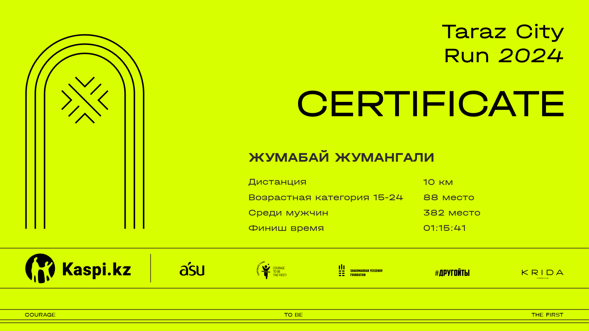 | 523 | Алмас Утепов | ![]() | Алматы | 406 | 00:15:24.60 | 00:36:25.00 | 00:56:15.80 | 01:17:02.20 | 01:16:53.20 | Скачать |