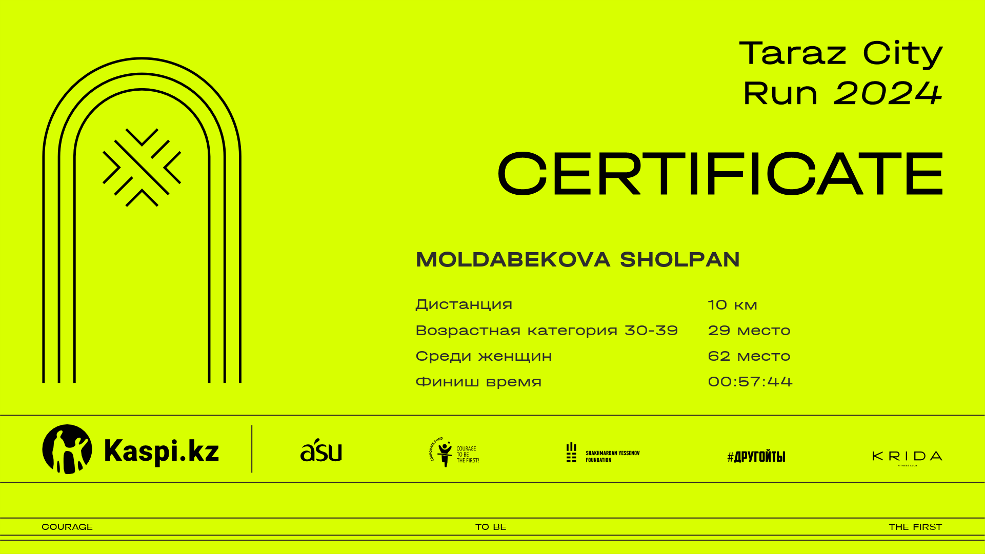 | 439 | Aigul Moldakhmetova | ![]() | Алматы | 62 | 00:20:33.50 | 00:42:44.90 | 01:04:30.50 | 01:04:12.90 | Скачать | |
