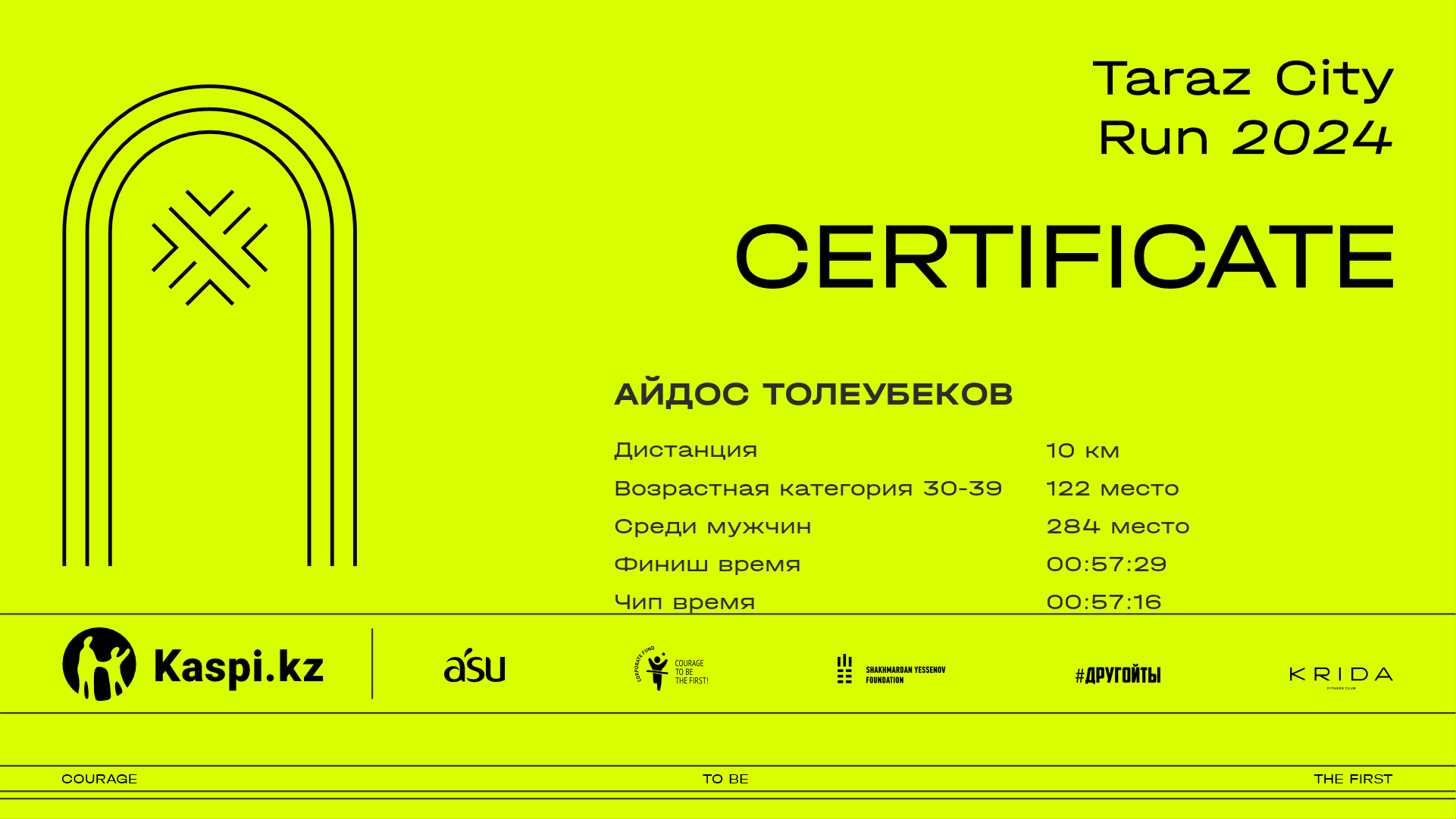 | 180 | Азамат Заманбеков | ![]() | Тараз | 307 | 00:11:13.10 | 00:23:30.50 | 00:36:01.30 | 00:48:05.30 | 00:47:59.70 | Скачать |