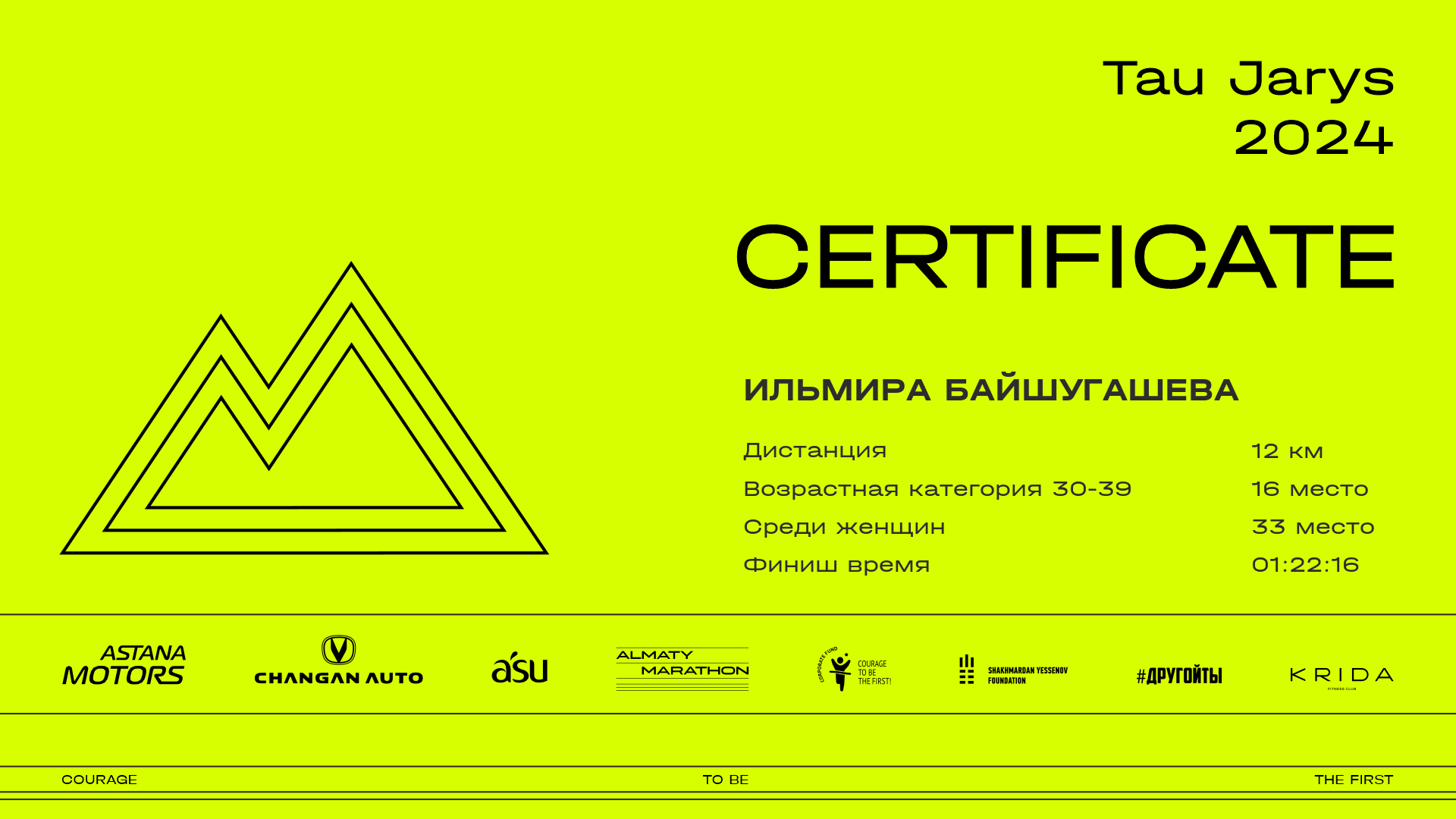 | 244 | Ильмира Байшугашева | ![]() | Алматы | 167 | 00:11:58.47 | 00:28:43.42 | 00:53:23.28 | 01:09:36.12 | 01:22:16.48 | 01:22:01.71 | Скачать |
