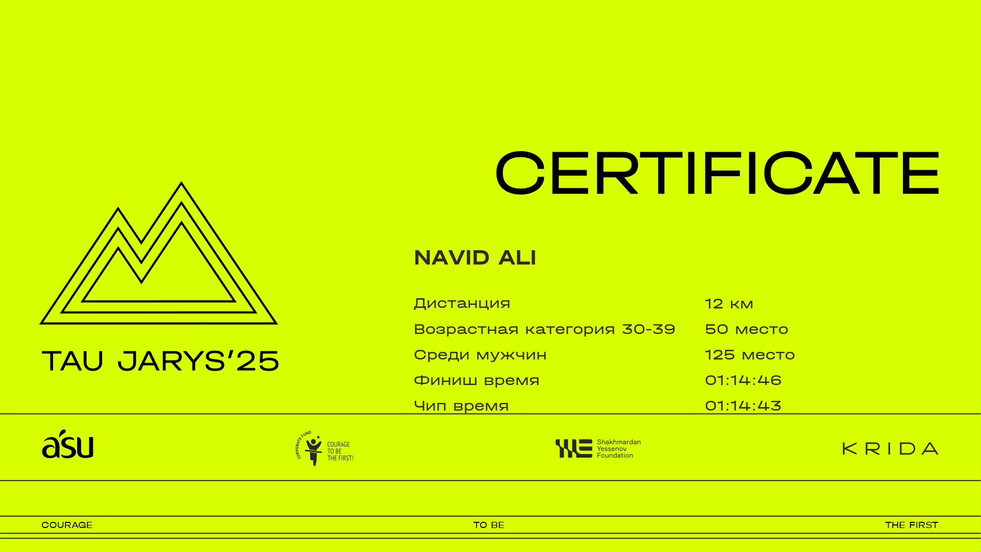 | 142 | Kazbek Serikbay | ![]() | Алматы | 483 | 00:08:21.90 | 00:22:22.80 | 00:29:14.70 | 00:46:23.40 | 01:01:36.90 | 01:08:48.60 | 01:14:48.00 | 01:14:46.30 | Скачать |