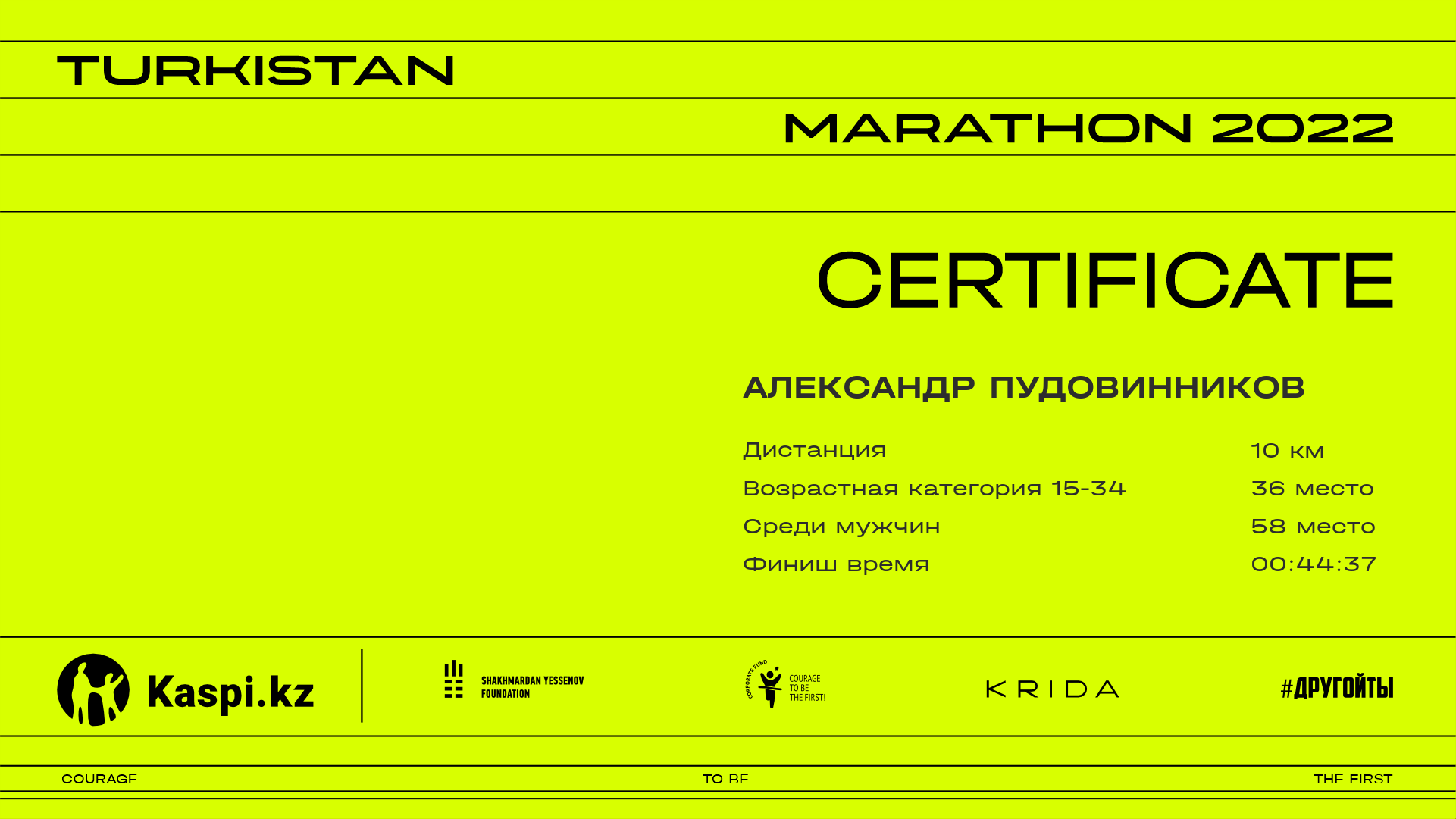 | 69 | BOLAT YESKENDER | ![]() | Алматы | 1321 | 00:22:19.77 | 00:44:57.91 | 00:44:57.91 | Скачать |