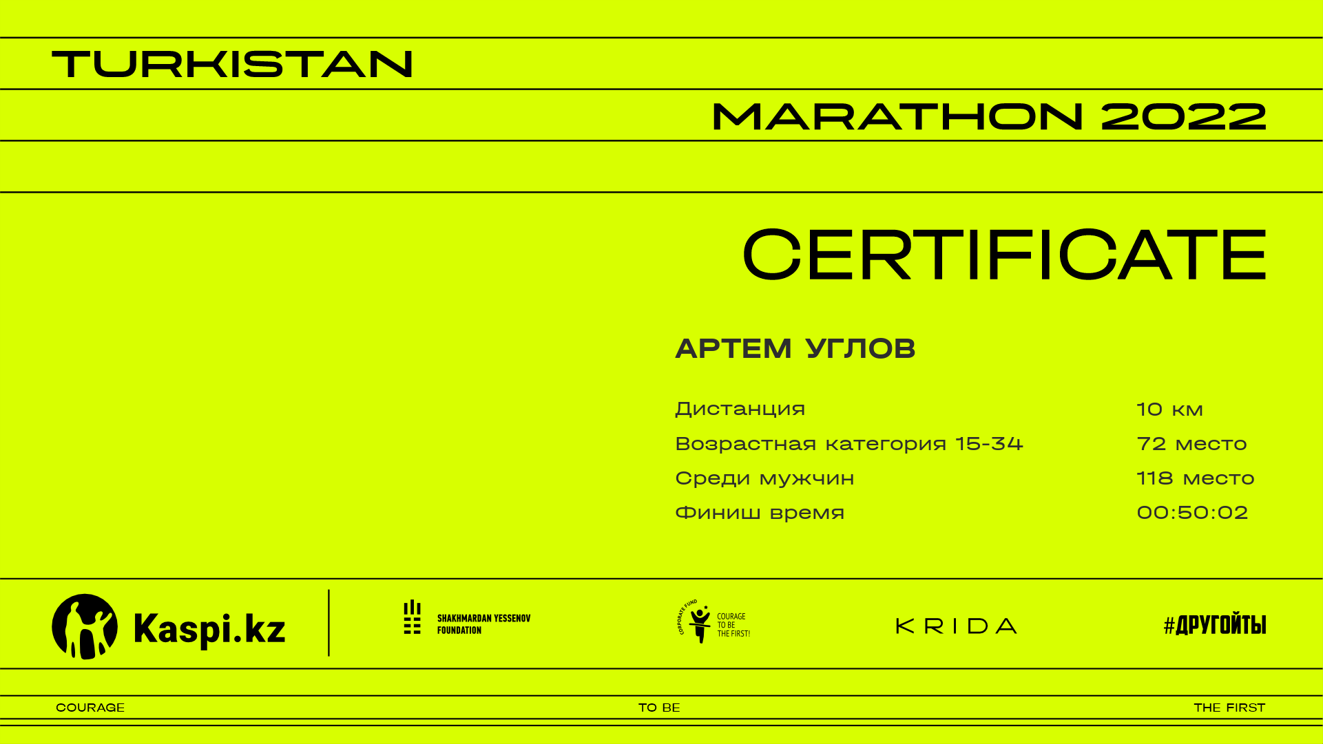 | 146 | Nurbek Oralbek | ![]() | Almaty | 1419 | 00:25:12.69 | 00:50:38.17 | 00:50:01.51 | Скачать |