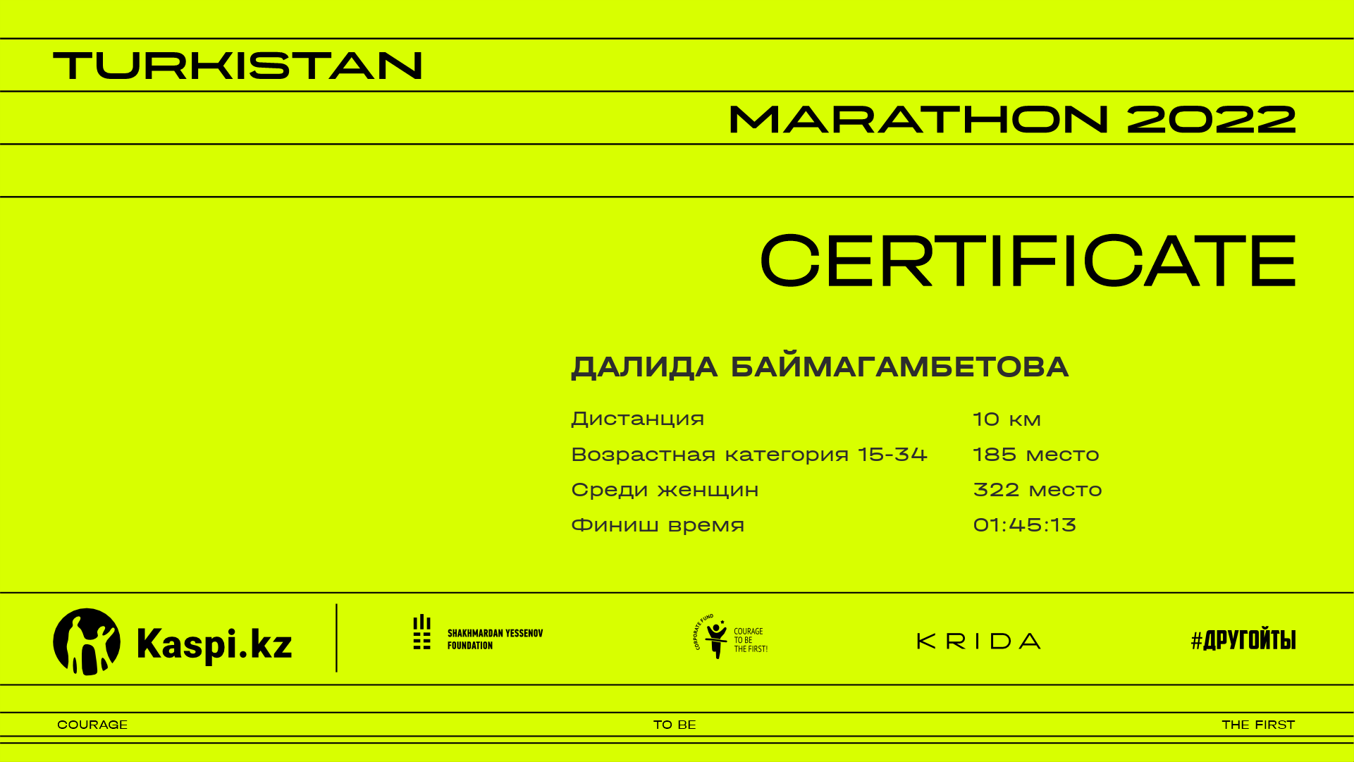 | 297 | Гульзара Ширипитдинова | ![]() | Алматы | 1250 | 00:29:32.26 | 00:58:10.96 | 00:57:42.17 | Скачать |