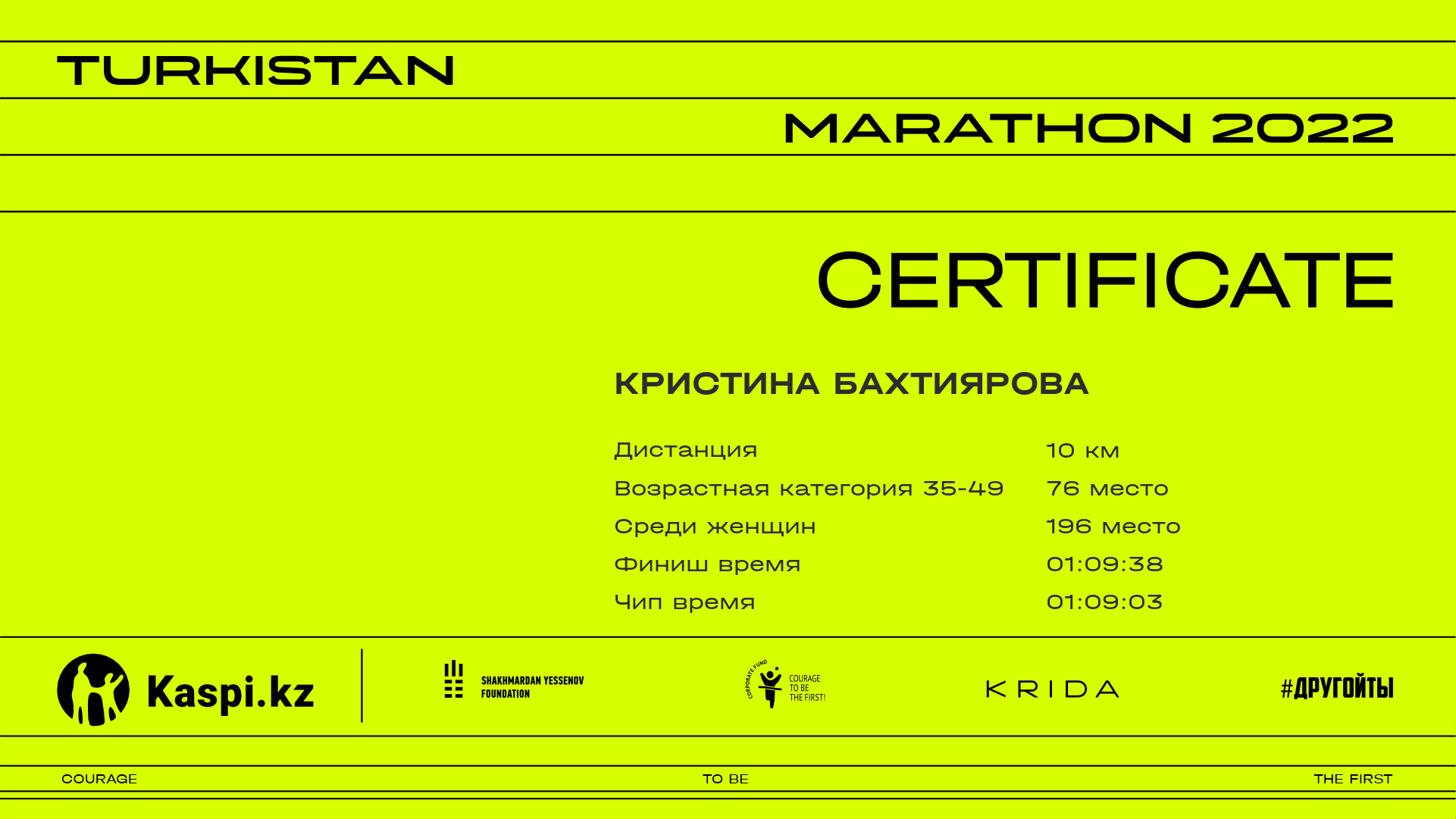| 548 | Botakoz Kaukenova | ![]() | Алматы | 1166 | 00:34:50.76 | 01:10:07.34 | 01:09:46.49 | Скачать |
