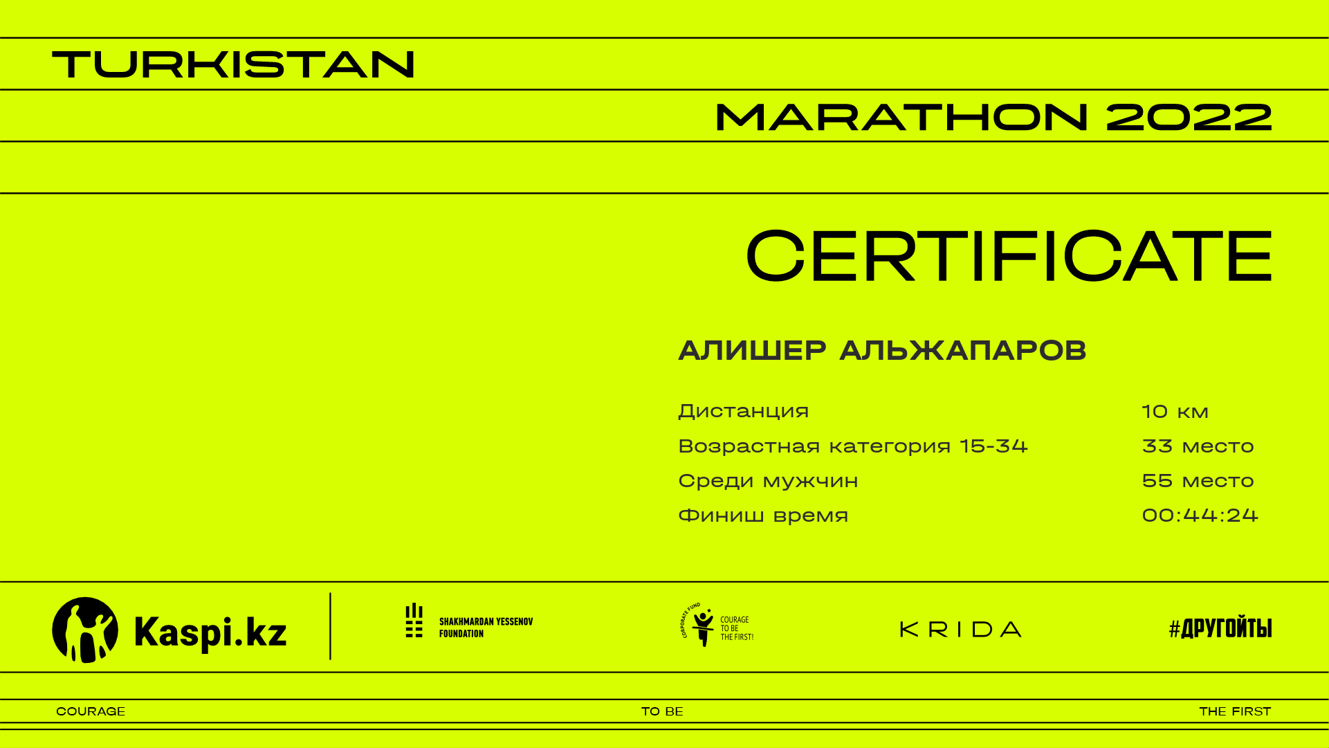 | 69 | BOLAT YESKENDER | ![]() | Алматы | 1321 | 00:22:19.77 | 00:44:57.91 | 00:44:57.91 | Скачать |