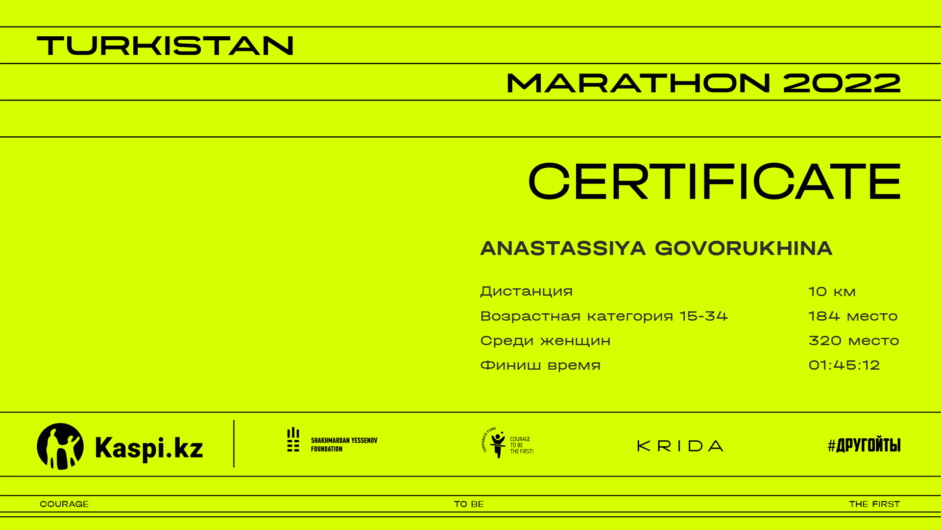| 723 | Anastassiya Govorukhina | ![]() | Almaty | 1109 | 00:50:01.33 | 01:45:12.83 | 01:44:37.40 | Скачать |