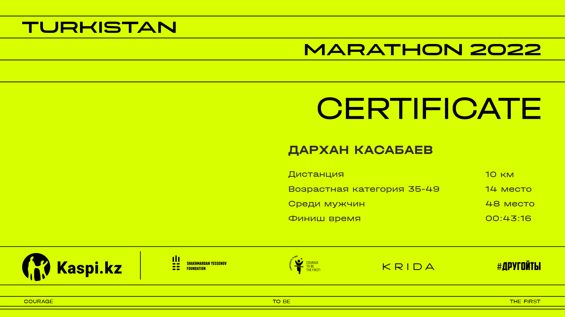 | 55 | Дархан Касабаев | ![]() | Алматы | 835 | 00:21:31.09 | 00:43:16.63 | 00:43:16.63 | Скачать |