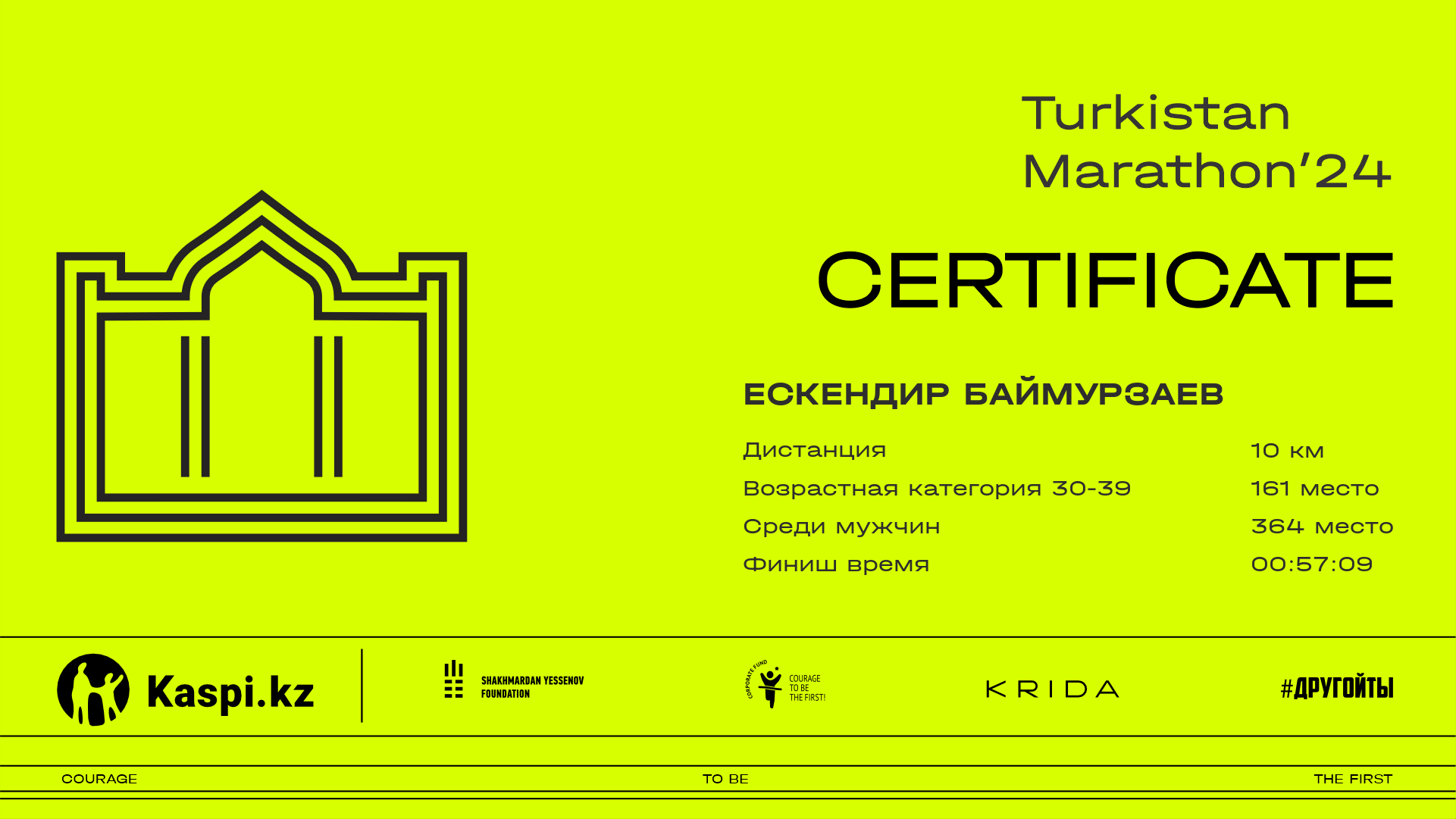 | 480 | Zelimkhan Zholdassov | ![]() | Saryagash | 2105 | 00:29:20 | 00:57:52 | 00:57:27 | Скачать |
