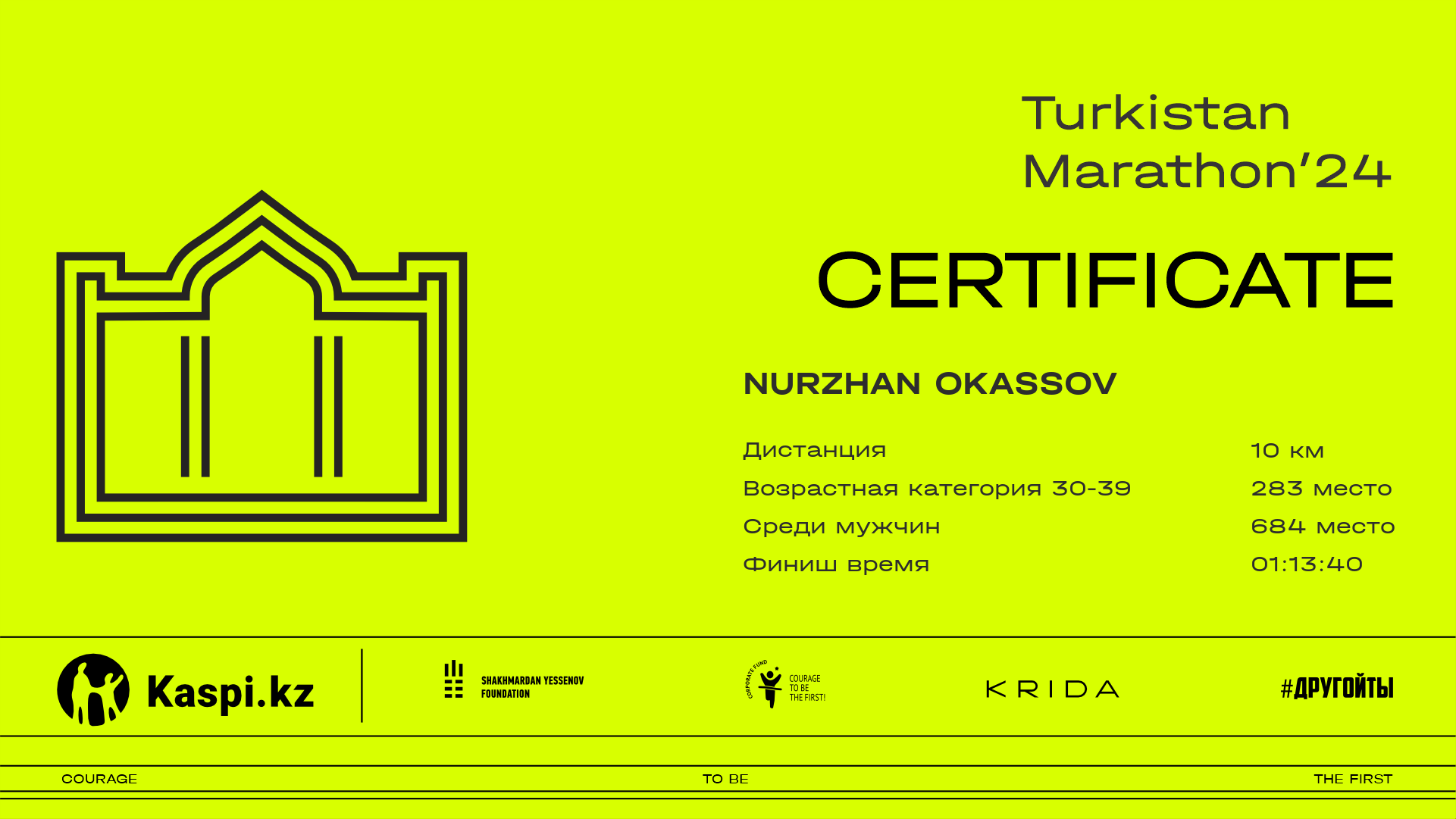 | 1075 | Султан Турысбеков | ![]() | Алматы | 1714 | 00:36:47 | 01:18:27 | 01:18:00 | Скачать |