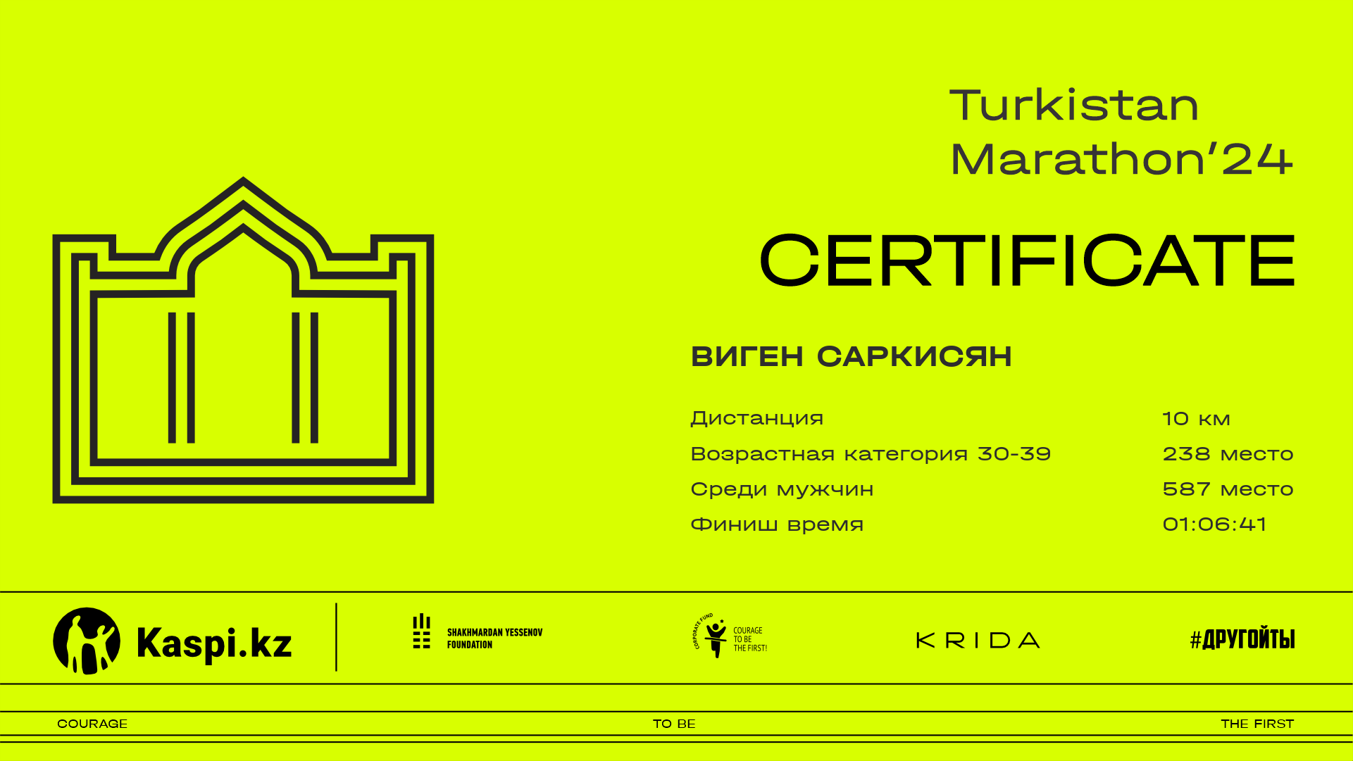 | 802 | Виген Саркисян | ![]() | Алматы | 1370 | 00:34:19 | 01:06:41 | 01:05:47 | Скачать |
