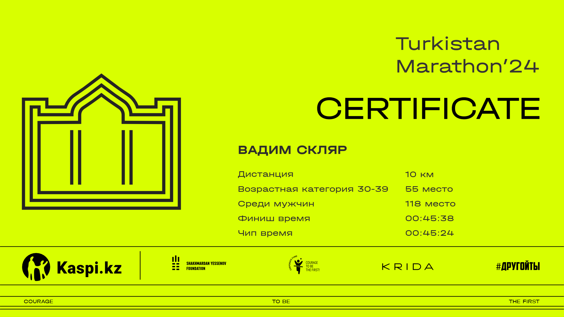 | 845 | Talgat Nussipbek | ![]() | Almaty | 1567 | 00:34:30 | 01:08:32 | 01:07:28 | Скачать |