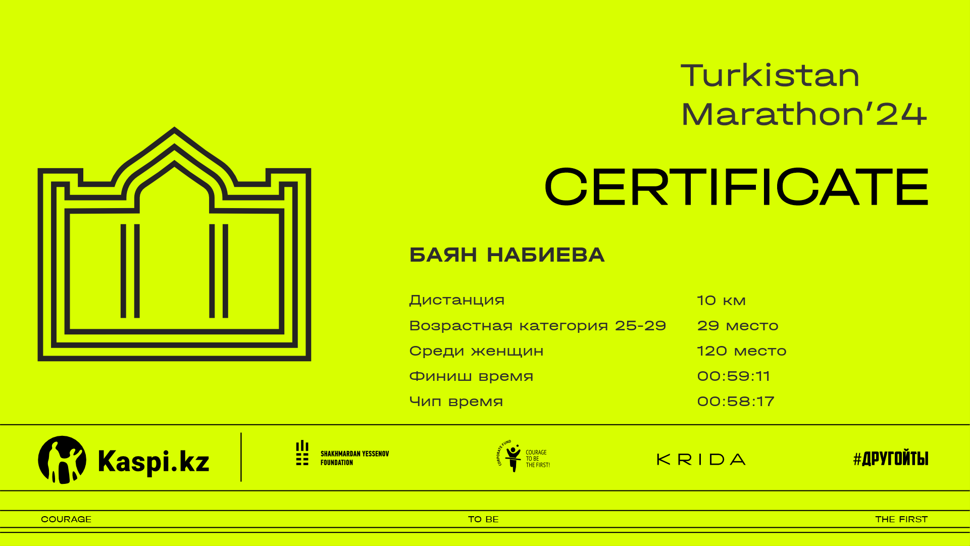 | 42 | Рахимжан Бейсенов | ![]() | Шымкент | 2205 | 00:19:38 | 00:38:29 | 00:38:22 | Скачать |