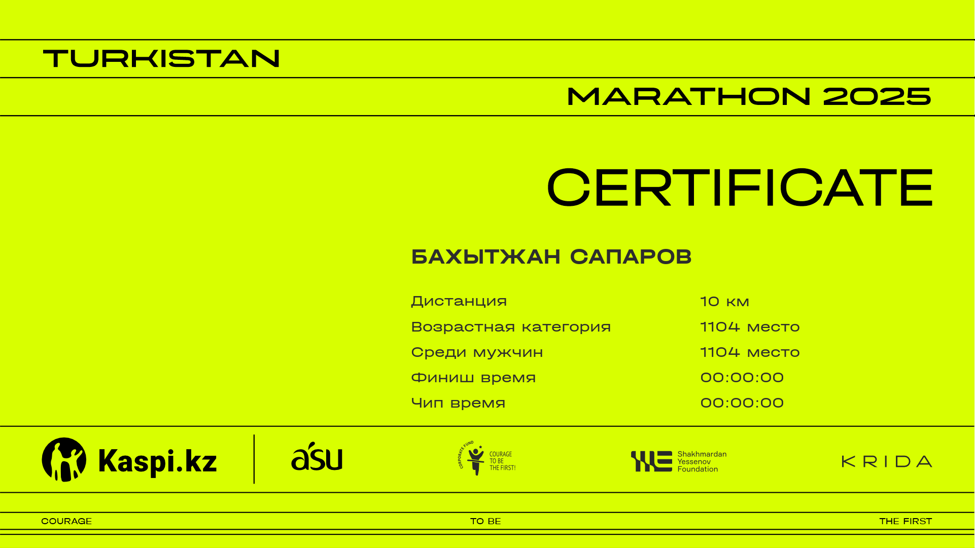 | 345 | Аскар Куандыков | ![]() | Шымкент | 1335 | 00:34:54 | 00:53:31 | 00:53:26 | Скачать |
