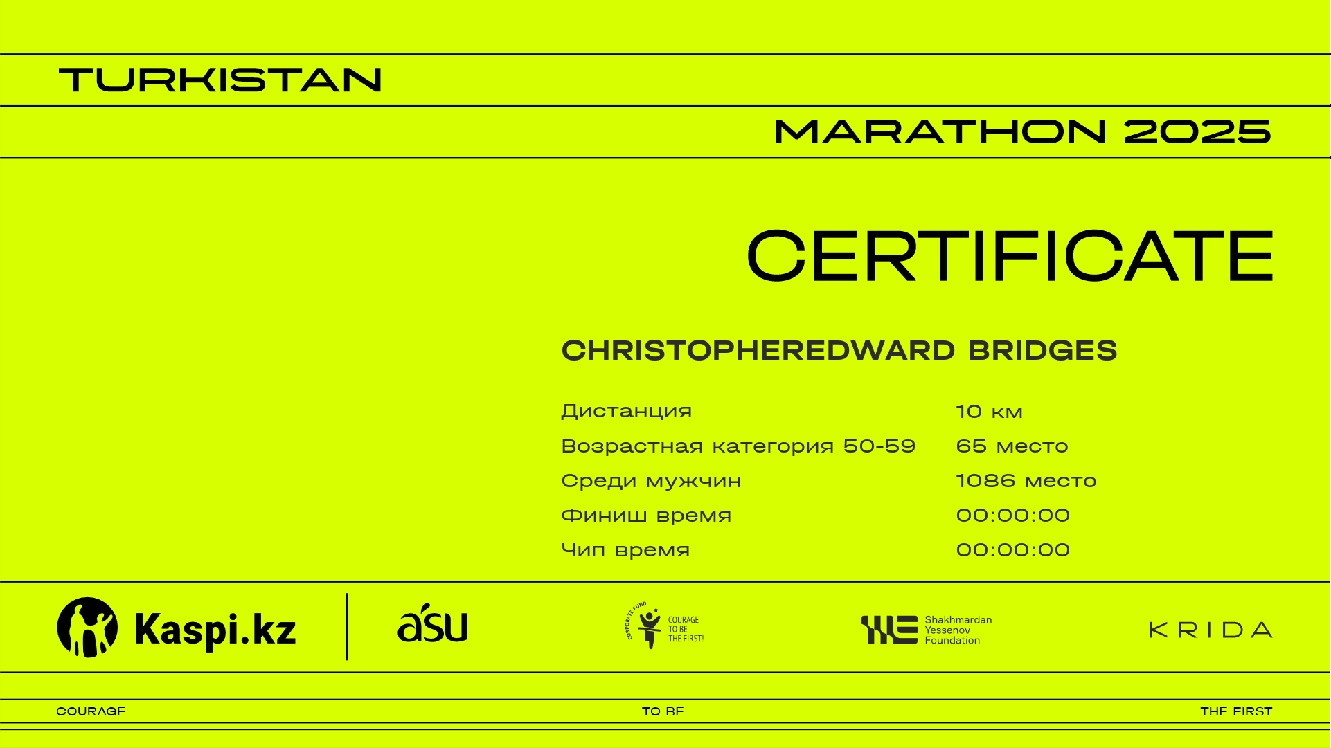 | Место | Участник | Страна | Город | Номер | 6.25 km | Финиш | Чип время | Сертификат |