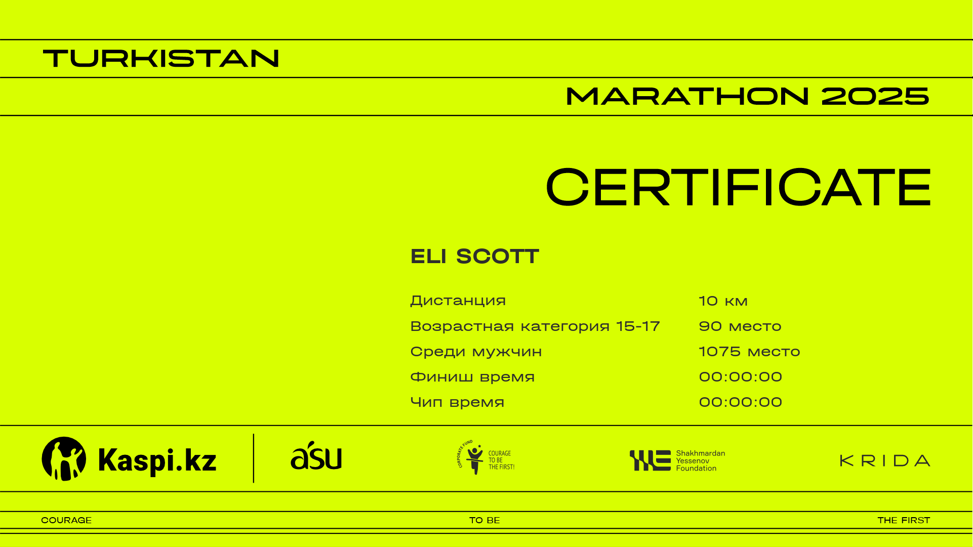 | Место | Участник | Страна | Город | Номер | 6.25 km | Финиш | Чип время | Сертификат |