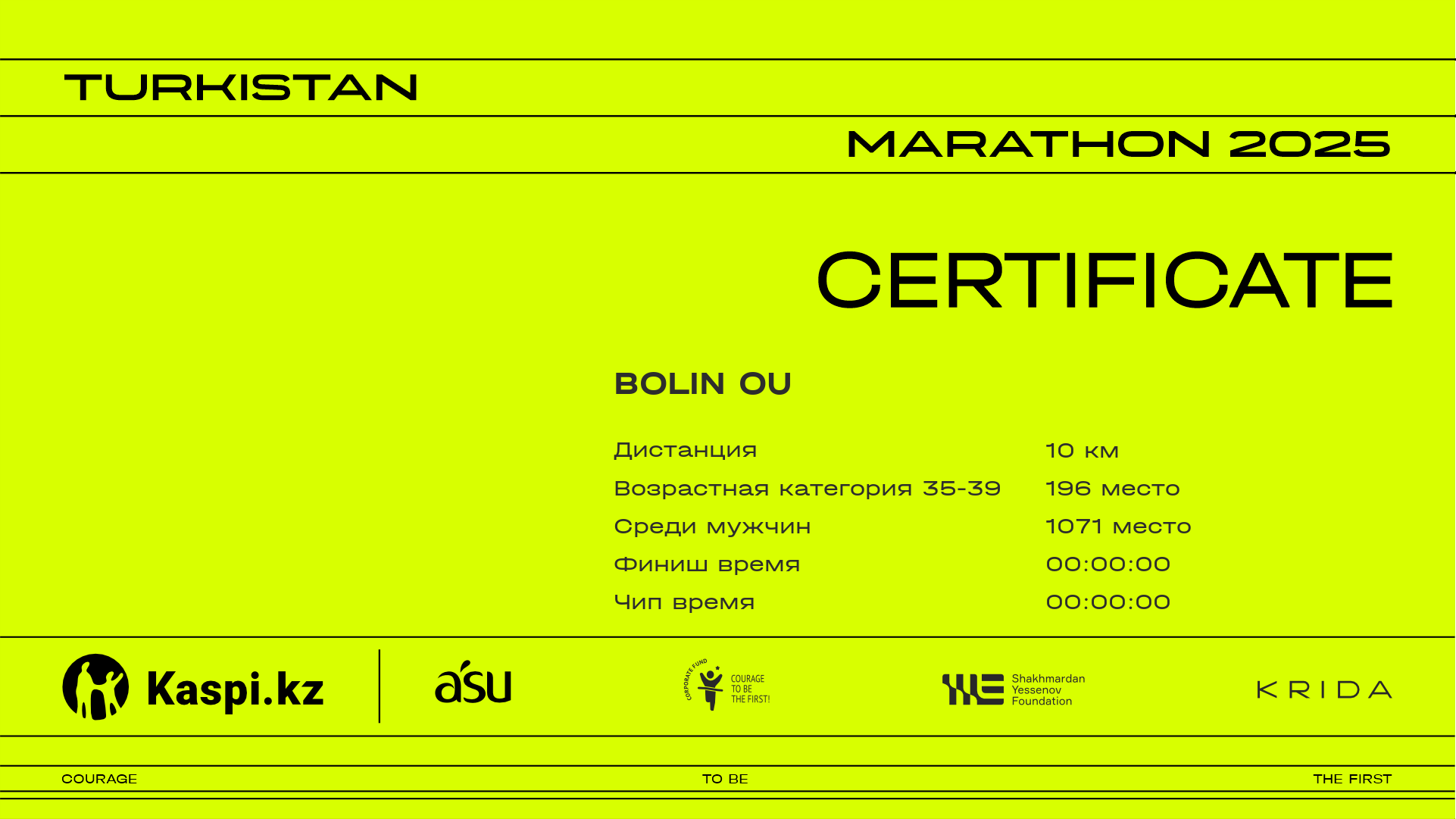 | 509 | BEKZAT ZHAMANKULOV | ![]() | Шымкент | 1542 | 00:34:57 | 00:57:53 | 00:57:26 | Скачать |