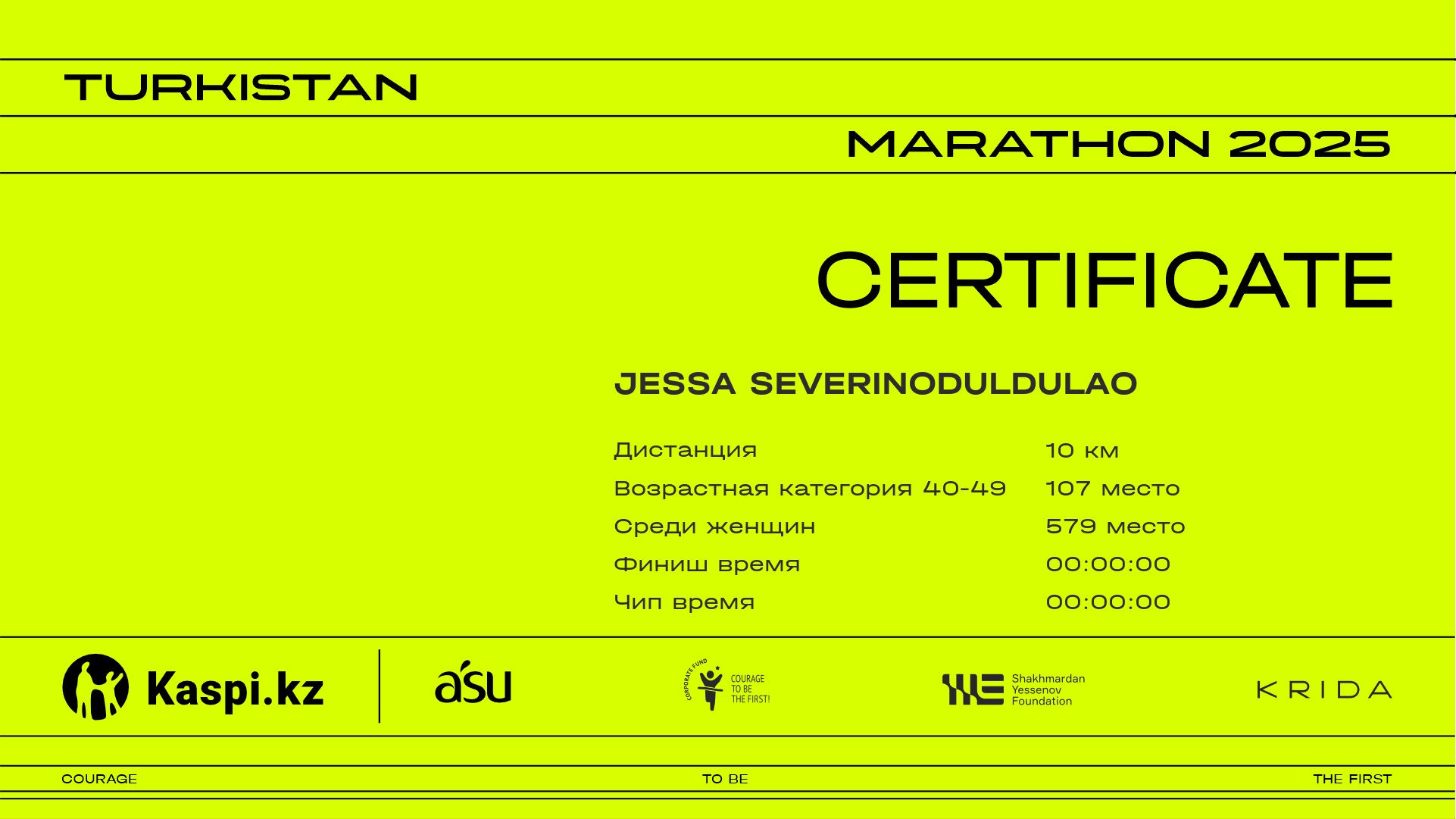 | Место | Участник | Страна | Город | Номер | 6.25 km | Финиш | Чип время | Сертификат |