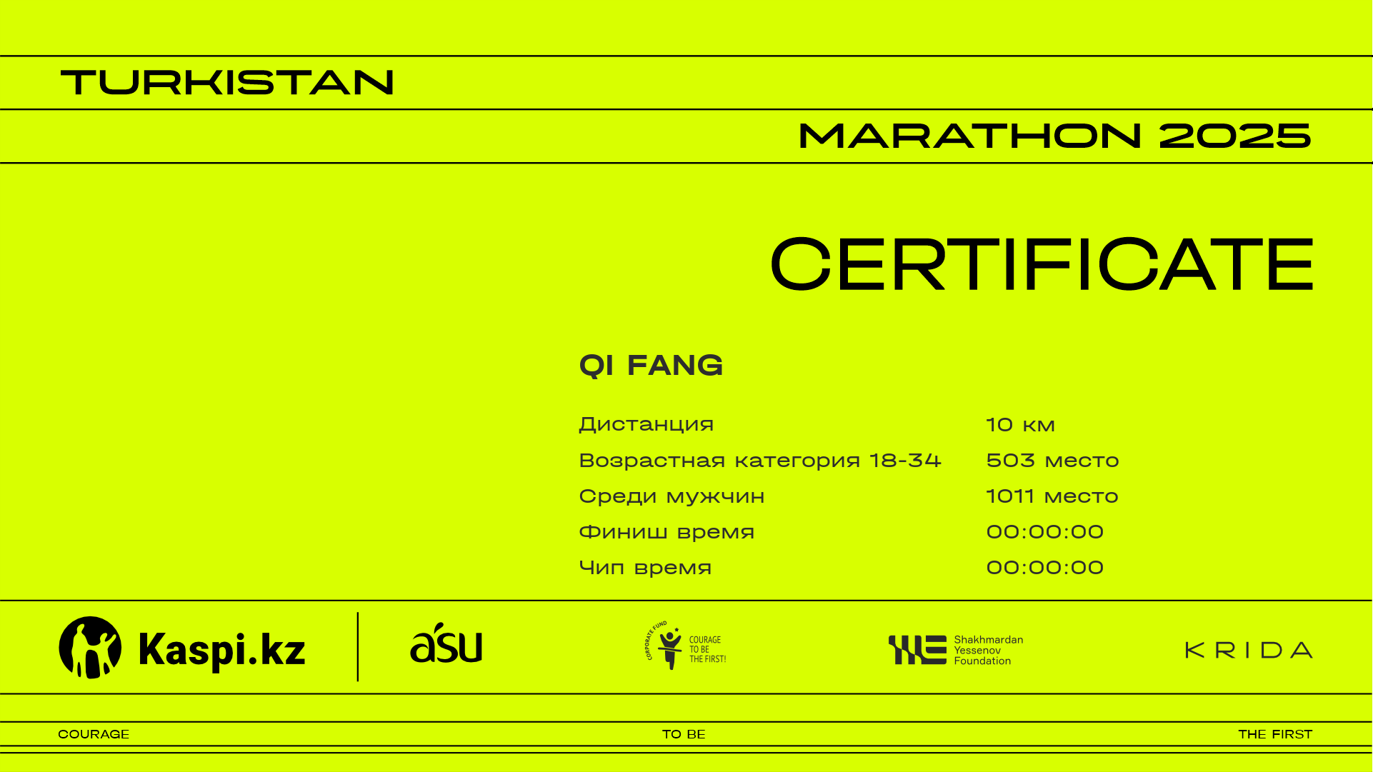 | Место | Участник | Страна | Город | Номер | 6.25 km | Финиш | Чип время | Сертификат |