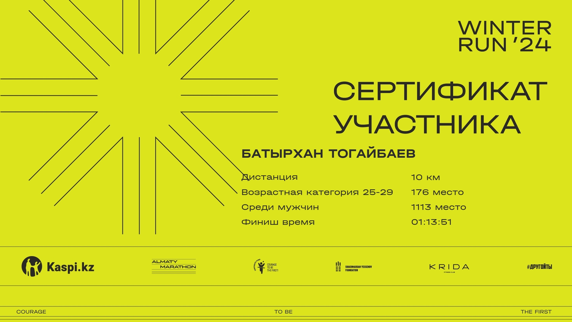 | 1526 | Батырхан Тогайбаев | ![]() | Алматы | 634 | 00:10:16 | 00:38:24 | 01:02:31 | 01:13:51 | 01:13:37 | Скачать |