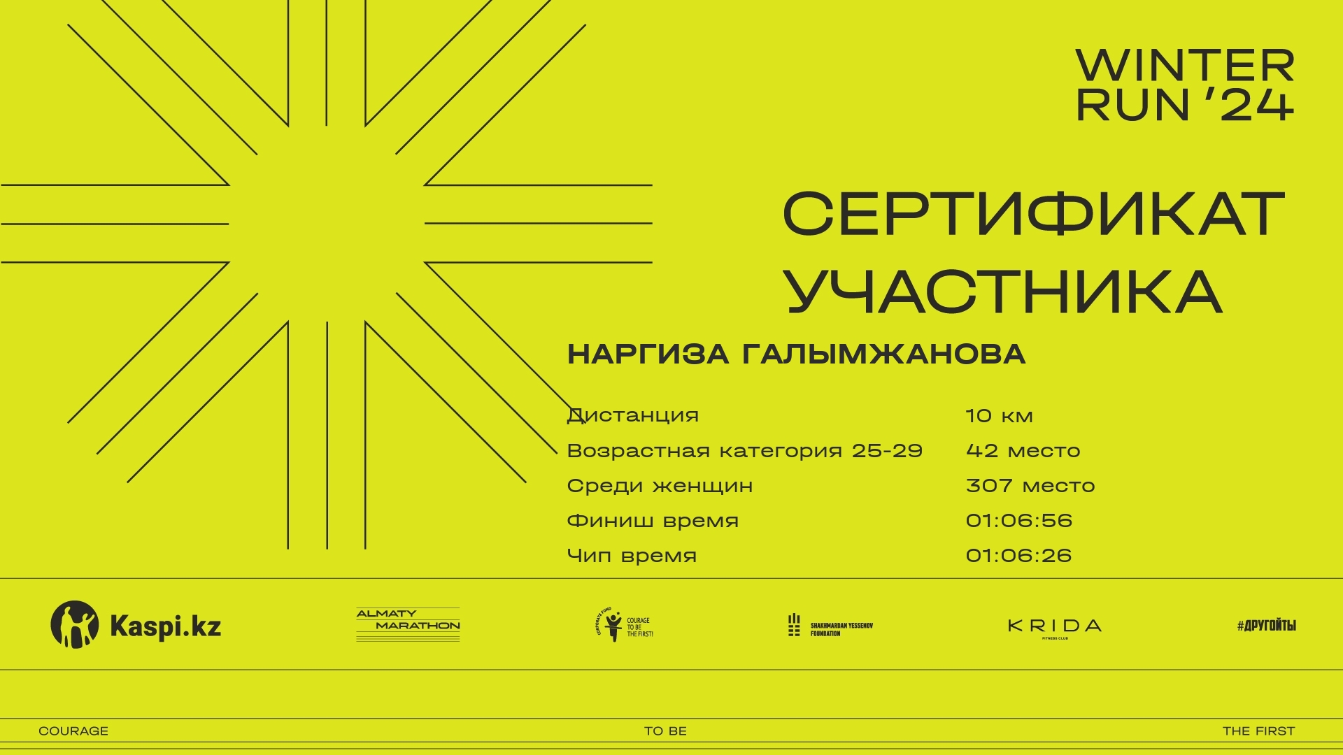 | 1271 | Наргиза Галымжанова | ![]() | Алматы | 369 | 00:09:52 | 00:35:37 | 00:56:51 | 01:06:56 | 01:06:26 | Скачать |