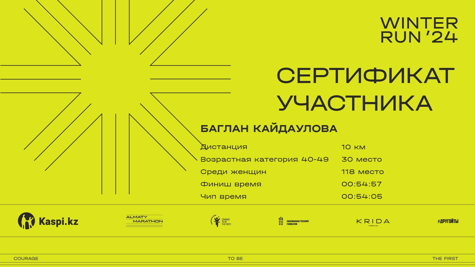 | 1322 | Mira Borankulova | ![]() | Алматы | 1763 | 00:11:21 | 00:35:50 | 00:57:40 | 01:08:07 | 01:07:53 | Скачать |